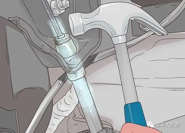如果你是在户外手刹被冻,身边没有开水,那我们可以找个工具敲击手刹线管的头部,靠震动使冰块破碎,然后拉手刹手柄使拉线解冻。