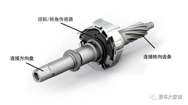 所以工程师在设计的时候就考虑到这些问题了,他们在方向盘下面安装了一个转向角度传感器,通过这个传感器可以监测到方向盘的转动角度,从而判断出方向是否打到底了。当方向盘即将打到底的时候就会控制电机迅速降低输出扭矩,一来减轻冲击力,二来避免电机堵转发热烧毁。
