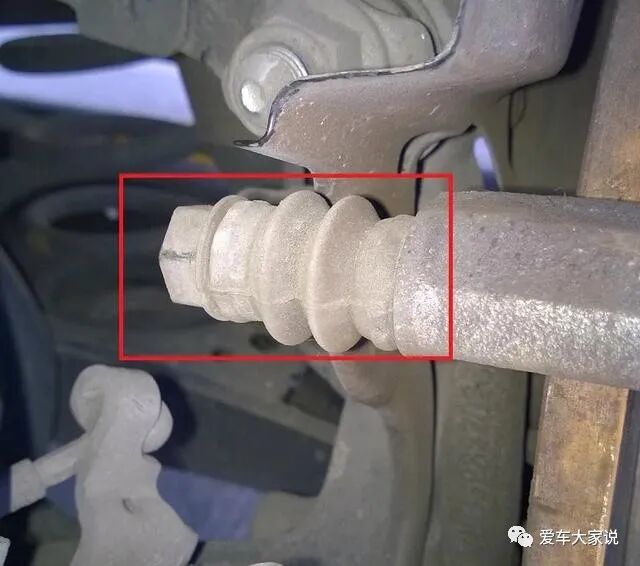 刹车卡钳在工作的时候需要来回移动,上面有两根导向销用防尘套密封着。如果防尘套破裂就容易导致导向销异出现移动不畅,从而引起刹车不回位。所以平时应该注意检查导向销的防尘套,如果破损的话要及时更换。