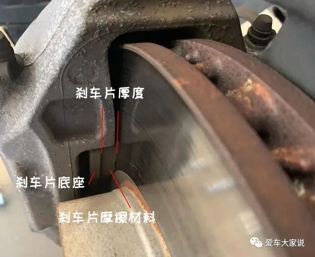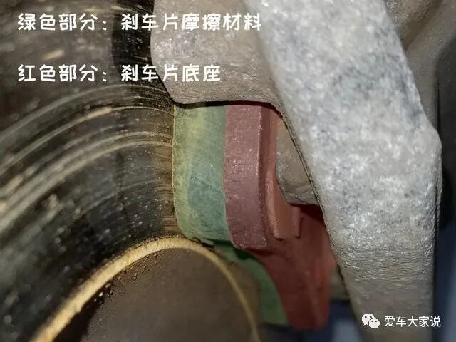 刹车片表面有很厚的一层摩擦材料,刹车时靠摩擦材料与刹车盘摩擦产生制动力。随着刹车的使用,刹车片上的摩擦材料一点点被磨薄,当摩擦材料快磨完的时候就需要更换刹车片了。