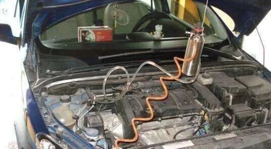 所谓“打吊瓶”,顾名思义,就是将积碳清洁剂装入特制的瓶子里,然后和医院里打吊瓶一样,用导管将清洁剂引入发动机内部,从而进行更彻底地清洗。用这个方法清理积碳,效果还是比较好的,能清理的位置比较多,而且大部分积碳都能处理。清理时并不是把清洗剂流入发动机内部就可以了,还要用高压气流进行冲刷。