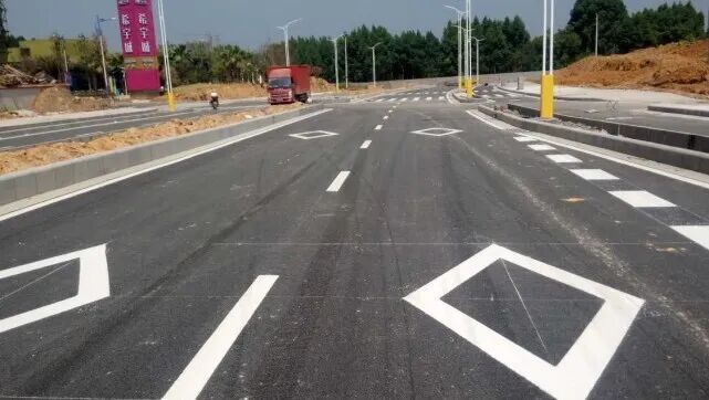 第三种是导流线。导流线平时见到的比较多,比如高速匝道处,或者高架入口,都能看到导流线。而作用自然和名称一样,就是引导车辆按该方向行驶,提高通行效率。不过,有的车主误以为导流线是临时停车用的,比如在高速上,停在导流线上吃东西或者换司机,这显然是不允许的。