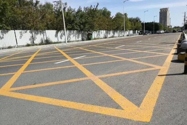 第二种是黄色网格线。黄色网格线应用的场景非常多,重点要记住的是,这不是用来临时停车的,恰恰相反,是严禁在上面停车、压线。比如在消防通道处,往往会设计黄色网格线。此外,在有些城市比如杭州,还会在需要礼让行人的斑马线前,设立“5米禁停区”。其实也是一种黄色网格线,看到后一定要在网格线外停车让行。