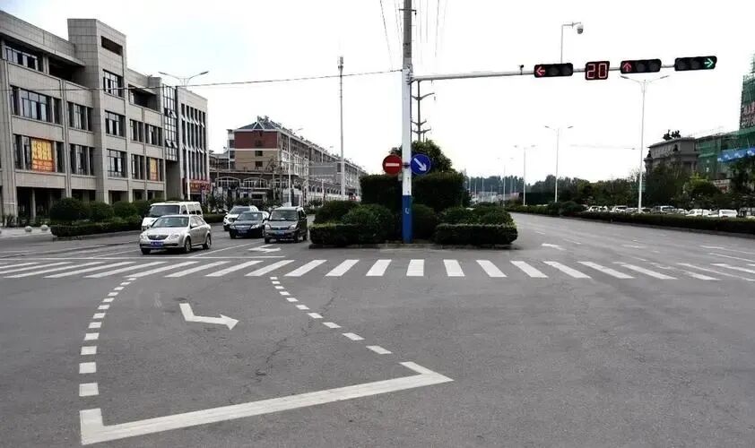 而“左转弯导向线”设置的目的很简单,就是引导车辆按照特定方向进行左转,一般会出现在开阔且不规则的十字路口处,如果知道其含义的话,确实可以帮助车辆左转。而左转弯导向线和左转待转区区分起来也不难,只要细心观察就可以了。左转待转区的前方一般有专门的停止线,表示车辆只能停在该线之内,就像斑马线一样。