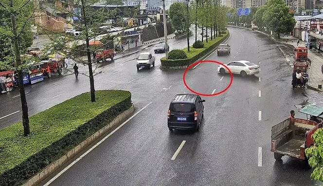 第一种情况,如果前方车辆突然强行掉头,导致后车来不及刹车而造成追尾事故。这种情况在平时也是比较常见的,比如有的路口明确表明“严禁掉头”,但前车仍然突然掉头,这种情况造成的追尾显然是前车的责任,和后车没有任何关系。