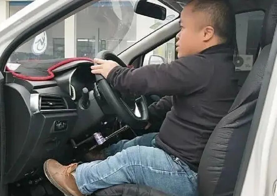 宝骏730体型算比较大的,但是经过了合法改装,尤其是在刹车和油门等处,即便身高1米2也能正常驾驶,并不会影响踩油门和踩刹车。可以看到,车上有一个残疾人专用的扶手,操作的时候,往上提是油门按下去就成了刹车,非常简单。但是即便可以驾驶,这样改装,被交警拦下不会受到处罚吗?这个不用担心,毕竟现在的驾照非常人性化,别说是侏儒症,就是残疾人也能考驾照。而刘海龙从小就喜欢汽车,并且头脑机灵,动手能力极强,考驾照的时候花46天就拿到手,即便是普通人,也不一定有这样的速度。