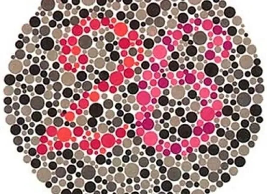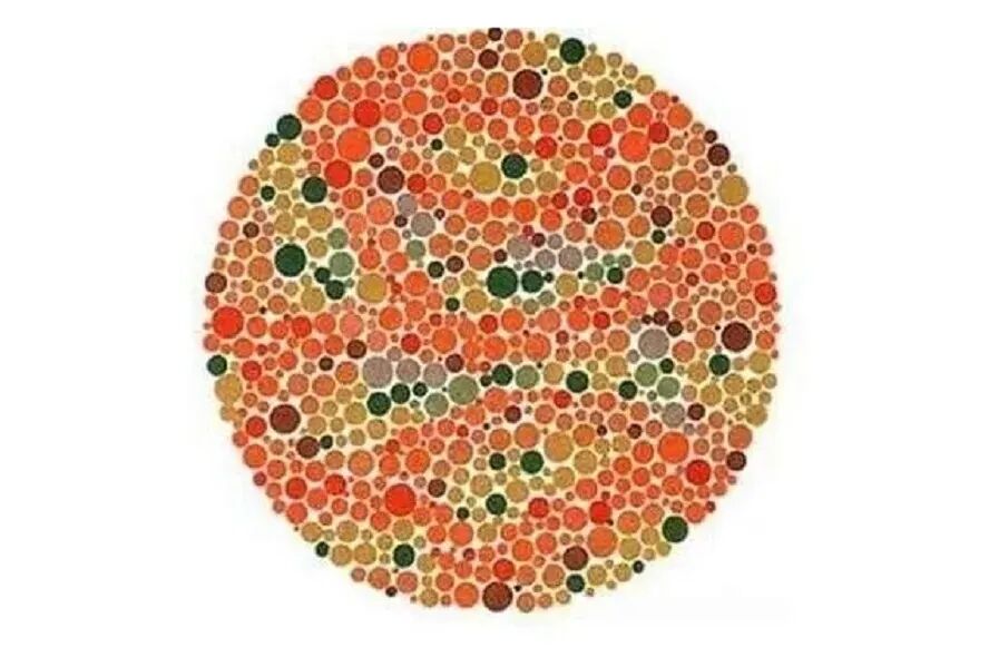 第3张图就有点难度了,可能很多人不知道是什么东西,看起来乱七八糟的,一时半会也找不到所谓的阿拉伯数字。所以看到这,有的人就会比较心虚,以为自己有红绿色盲。其实恰恰相反,这张图只有红绿色盲患者,才能看到上面的数字,那就是5,如果是正常人,是看不到这个5字的。因此,当你发现这张图杂乱无章,什么东西也没有的时候,那么恭喜你,眼睛基本没问题。但如果你看到了上面的数字5,那基本就和开车无缘了。