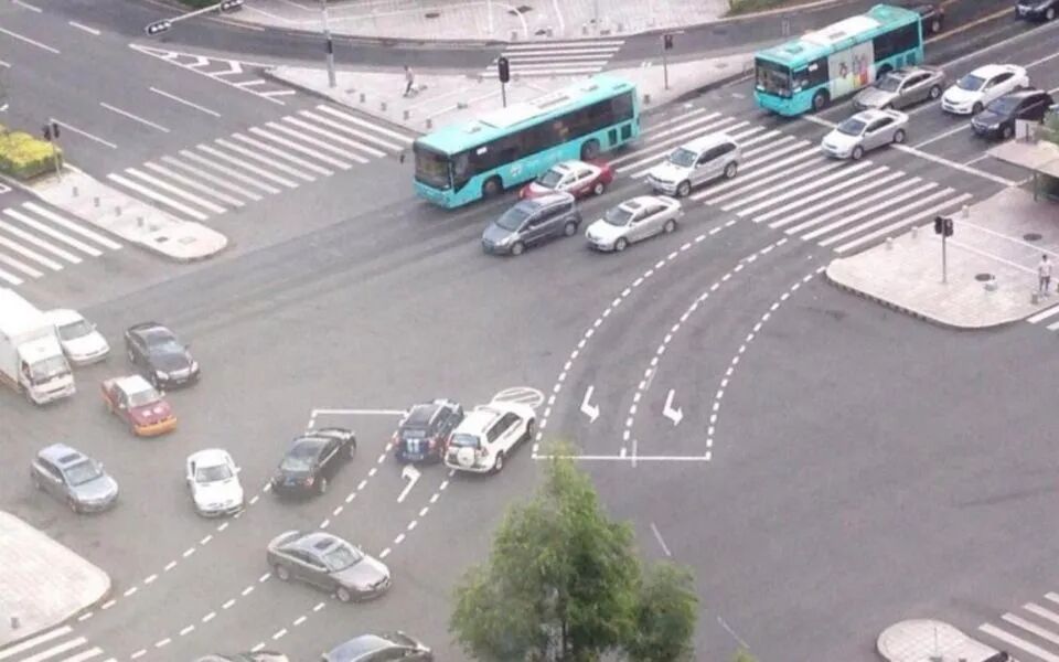 而当左转信号灯变成绿灯,说明可以左转了,这一设计还是非常人性化的。但是,在有些路口会设置一种和“左转待转区”非常相似的“左转虚线”,很多车主不清楚导致扣分罚款。其实,这种“左转虚线”是一种左转弯导向线,和左待转区完全不同。要注意的是,如果车主们将“左转虚线”当作“左转待转区”,并且在上面停车的话,被电子眼拍下会受到相关的处罚。从形状上看,两者还是比较相似的,特别是在夜间灯光不足的时候,看起来更是如出一辙。