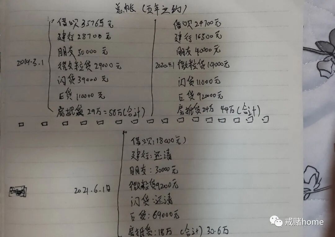 那个月里,我真的是渐渐的喜欢上了赌博,为了回本,我动用了一笔死期的存款,共计20万,没到一个星期,这20万就已经打了水漂。看着自己存款突然没了,又动起了网贷的歪脑筋,前前后后借了58.6万元,一个月的功夫手里的钱,加上网上借的有96万之多,就连唯一的全款单身公寓也做了抵押,那时候真的彻底慌了,也真正感受到了网赌是有多可怕!跟朋友坦白了,朋友把他曾经网赌得经历告诉了我,这才意识到赌就是一场骗局,我就是从那时起,决心戒赌,因为我还有外婆要照顾,几十万负债不多还来得及。
