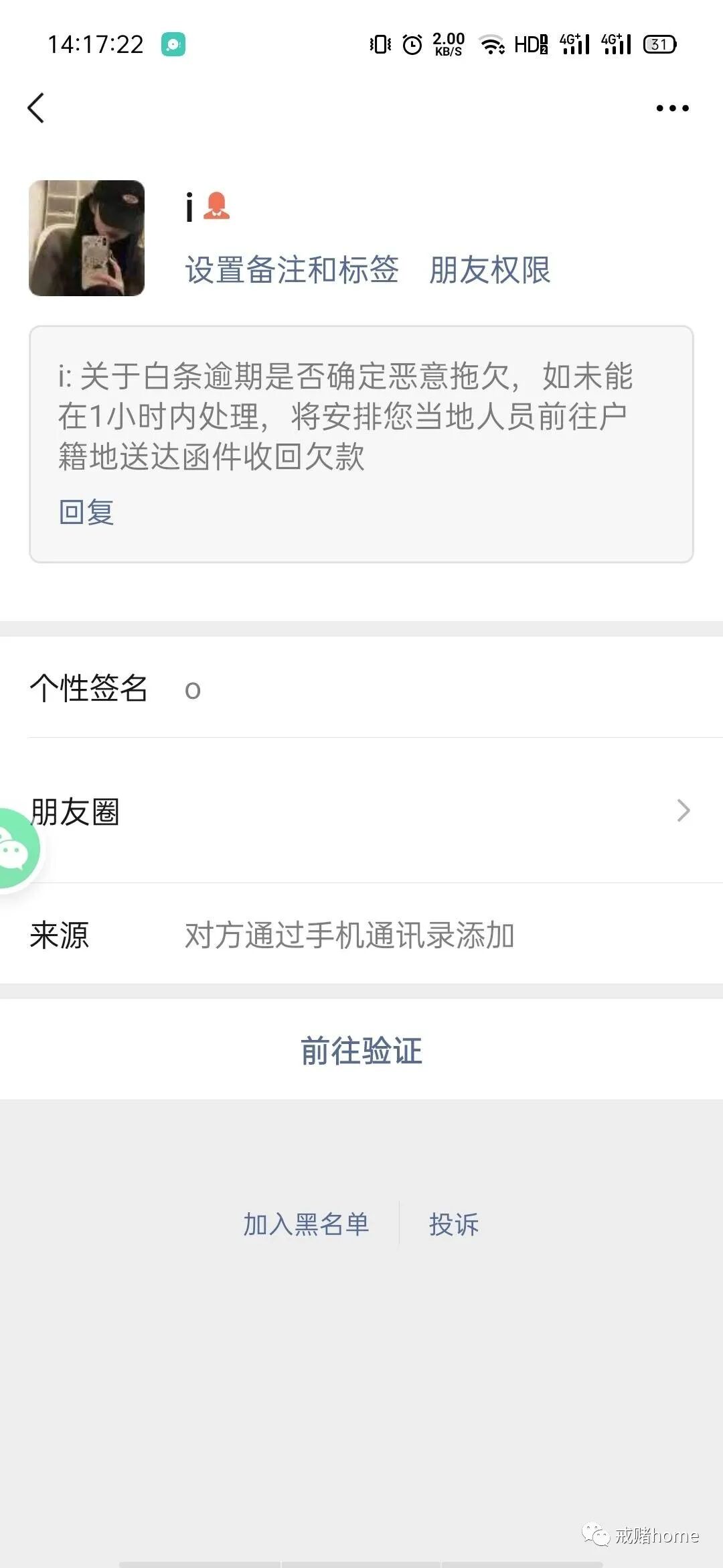 戒赌3个月了,每天还是一样,天天都有几十个催收电话,短信,还有微信加好友讨债的,我都选择默不吭声,不敢接,也不想接,没钱没底气,连协商的勇气都没有。今天,恶心人的京东金融,竟然给我的主管打了七八个电话,这些催收为了能够完成业绩,丝毫没有人性,还好我耐心解释了,这才保住了饭碗,要是连工作都丢了,我真的要去喝西北风了...