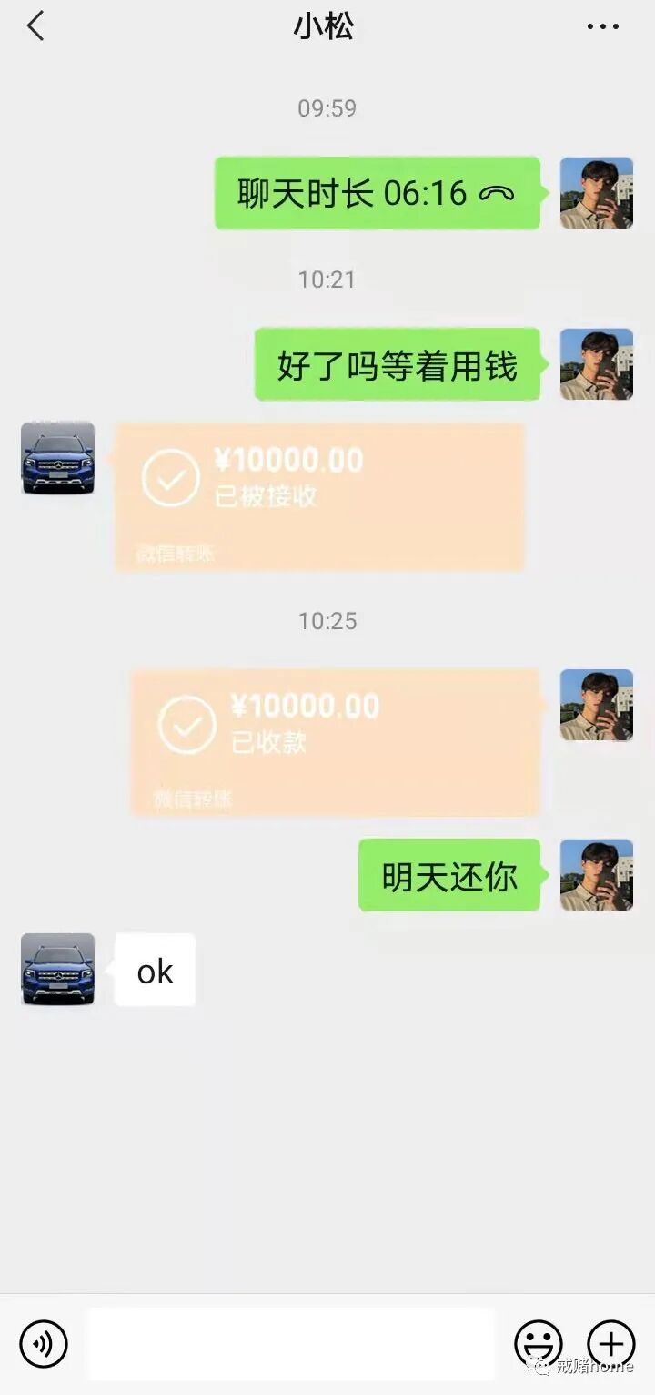 工资6500,一个朋友3000,另一个朋友1万,我2个小时不到,就输了19500,我狠狠的抽自己,为什么要赌,不赌什么事情都没有,为了赢几千,输掉这么多,真的想死的心都有。又开始打电话给婶婶,说周转2万,第二天给,我不敢把时间说的太久,因为说的太久担心人家不借,婶婶也没说什么直接就给了我2万,这2万到手,一手下一万,下2手就输光,心态完全就坏了,哪怕知道要输,我也没办法停止了,因为我已经输了那么多了,根本停不下来。打开通讯录,又接着找下一个人借,找到了我妈,我说房租到期了,工资下个月发,要交半年,总之是谎话连篇,又给我弄来了一万五,我答应我妈,等工资发了,我再慢慢补回去。