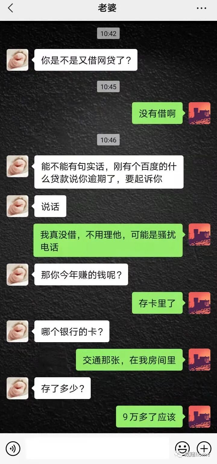 从今年复赌开始,我就完全变的没有一点人情味,骗家人,骗老婆,骗朋友,借了网贷又还不起,有点钱就送给狗庄,输了又对老婆、父母发脾气,其实我知道自己有错,自己内疚,就是控制不住自己的那种脾气,像个恶魔一样,说最狠心的话,做最狠心的事情。也许,别人以为我只是输了点钱,我输的不只是钱,我输的是做人的底线,人品、道德、三观。