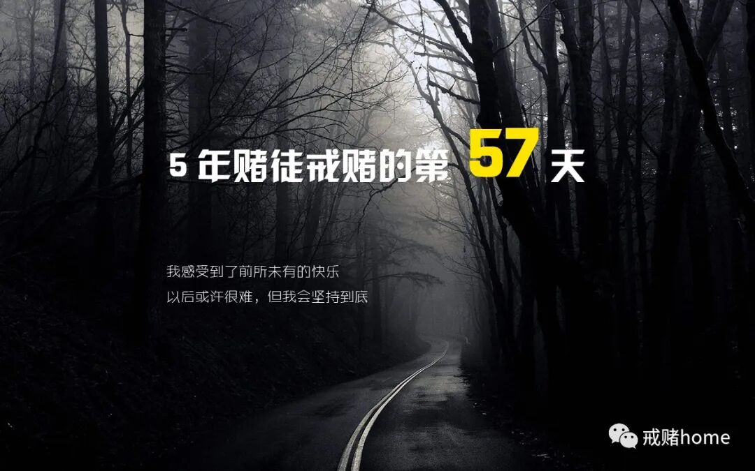 还记得第一天关注这个公众号的时候,也是我戒赌的第一天,印象最深的是有一篇文章写的特别好,只要肯戒赌,今天永远是起跑线,就当生病了。是啊,我病的不清,连家里2套房都败光了,让父母也欠了很多,自己也欠了那么多,债务不晓得到底多久还清,可是再不戒赌,哪天父母有个大病,我连个住院费都交不起,我不能再这样自私了,我该醒醒了,只要我不赌,债务慢慢还,就算我父母生病了,没钱去帮,亲戚们看到我改过自新,也愿意搭把手,起码我以后还能慢慢还。