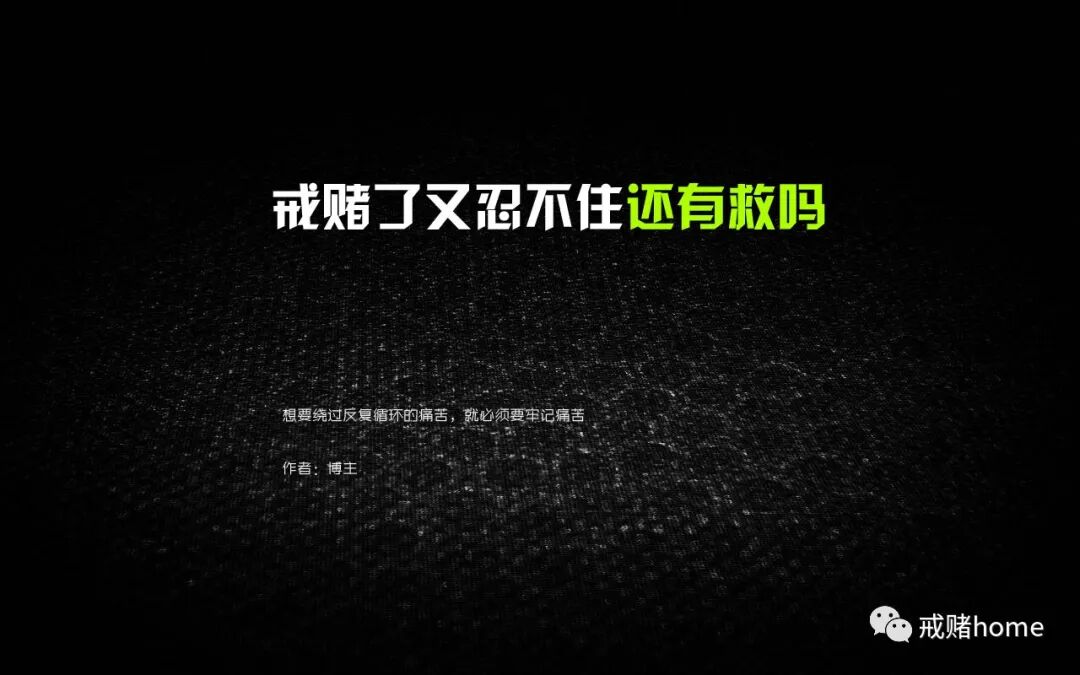 刚经历过输大钱的痛苦,那段时间会特别清醒,也清楚自己是玩火自焚,所以才想到了戒赌,但大家忽略了一个关键点,那就是任何痛苦都会随着时间而冲淡,当你忘记了上一次的惨痛教训,那么复赌的时间也就越来越近了。有的人三个月后复赌,有的人一个星期后复赌,这都是因为你忘了痛,才导致的,为什么很多粉丝会把痛苦的经历写成文章发出来,并不是他们闲着蛋疼没事干,就是想无时无刻的记住痛,当下次欲望来袭时,看看前段时间自己的痛苦经历,会让你瞬间变得理性起来。