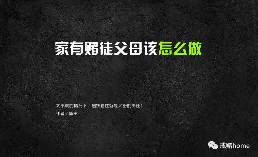 戒赌home其实不仅赌徒粉丝多,家长粉丝也多,每天有来自全国各地的父母求助,有的是姐姐,有的是老婆,他们方法用尽,也没有拯救过来,所以,一些难以戒赌的粉丝们,请换位思考,这些父母担忧的问题,何尝不是自己父母担忧的问题,在索要钱,欺骗他们钱之前,请想想,真的值得吗?网赌就是诈骗,输了自己的就算了,真的没必要连父母的养老金都给输进去,更不要等到债务堆积如山时,再去坦白,那样救不了自己的,把父母所有积蓄输完,真等到父母的身体出现问题时,你又该怎么办?所以,哪怕你戒不掉,你输工资也好,怎么折腾也好,别把这灾难引向家庭,兔子都不吃窝边草,所以别把自己唯一的家都给输了。
