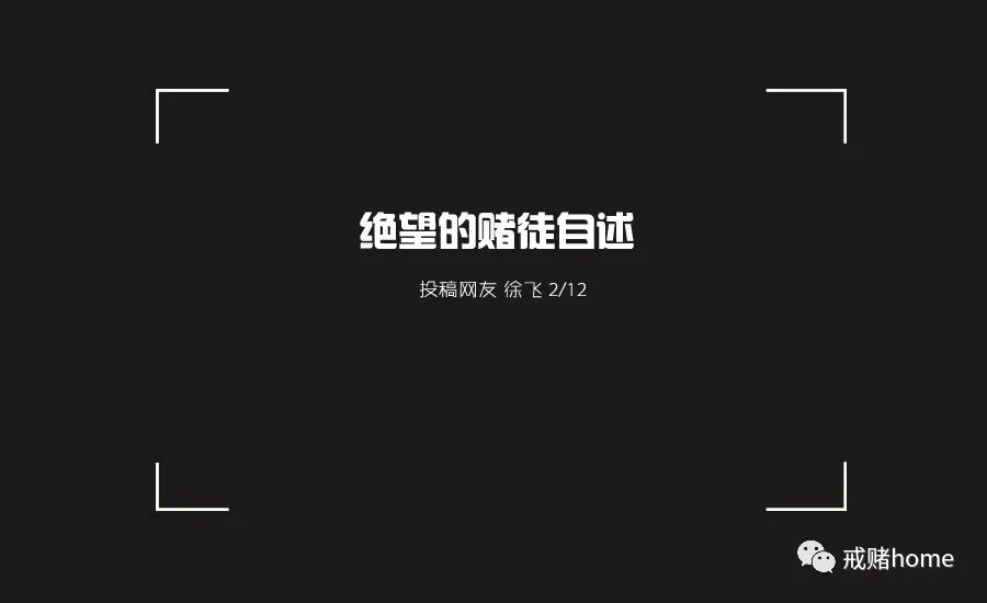 今年是2021年,我的愿望只有一个, 我希望自己能够重新站起来,也希望自己的父母健健康康,我不奢望谁能带我脱离苦海,我只恳求自己能成功的把赌戒掉,写下自己的糗事,不怕网友们笑话,因为这是我最落魄时写下的自述,我要告诉自己,现在的自己有多苦,多累,等将来日子稍微好点时,用来提醒自己千万别再赌了,这种猪狗不如的日子再也不想在经历了。——投稿人:徐飞(一个罪孽深重的赌徒亲笔所写)