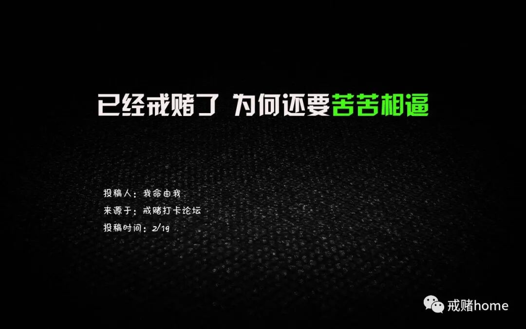 为什么我要承担这么多的痛苦,我好难受,我好痛苦,我好无助,我感觉自己快活不下去了,全世界的人都不谅解。都说赌徒回头是岸,我已经戒赌三个月,努力工作,还是被债主步步紧逼,逼的我想不开,逼的我想去复赌,我多想告诉大家,我不是不还钱,我只是需要时间罢了,为什么还要紧追不舍,置我于死地,就不能给我一个重新悔过的机会么?生活真难,我如果不是人,是个动物,那该多好,真的,我不想还有下辈子,我不想做人,哪怕灰飞烟灭,我都愿意!
