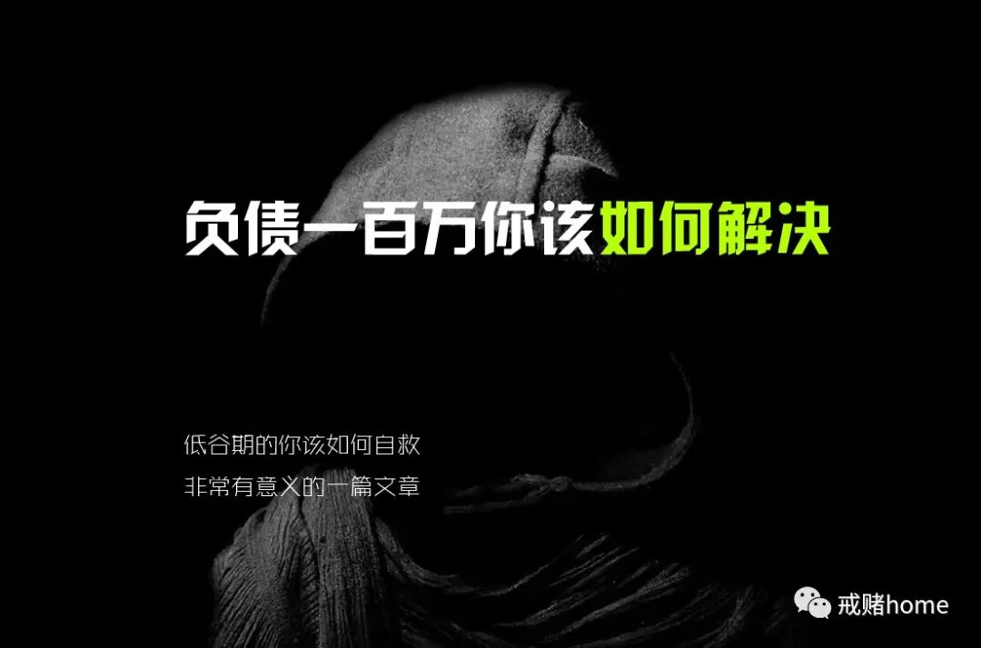 当你负债一百万的时候,你的月收入却不足两万,那么你就认清一个现实,这么多的债务,短期内肯定是还不清的,更不要抱有幻想,觉得出现贵人,能帮你还清。这时,你需要做两件事,第一件事,你必须要考虑,为什么你会负债这么多?毫无疑问,对赌徒来说,负债便是赌引起的,那么第一件事就是戒赌,只有戒赌,债务增长才会停止。第二件事那就是熬,把自己的工资一拆为三,一边还债,一边存款,再留点生活费,确保自己就算负债,也能与正常人没区别,只不过存款比常人少了些罢了。