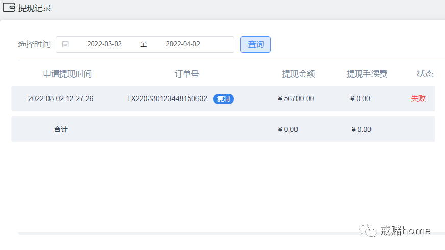 3月2号-4月2号,一个月下来总体输了56万,我的交易记录里,只有充值,没有提现,唯独3.2号好不容易赢了5万多,提现还失败了,平台说流水不够,让我继续玩,后来的结果就是输完。今天是4月2号,最近5天我充了19万,一分没提,输成了傻子,每天心不在焉,只想着借钱,越陷越深。其实并不是不知道网赌的假,只是已经到了这个时候了,特别的不甘心,就说昨天吧,昨天充的第一个3万,我其实已经打到了7万多,因为输的多了,赢的这点根本就解决不了问题,最后输完。我几乎每次都是先赢点,再输,我的心理好像被平台猜透了一样,它知道我赢了也不会走,一直给我下套,直到今天最后一笔3万输完,我才清醒过来。信用卡刷空了,朋友那边还欠着24万,只是一个月时间,无忧无虑,变成了穷途末路。
