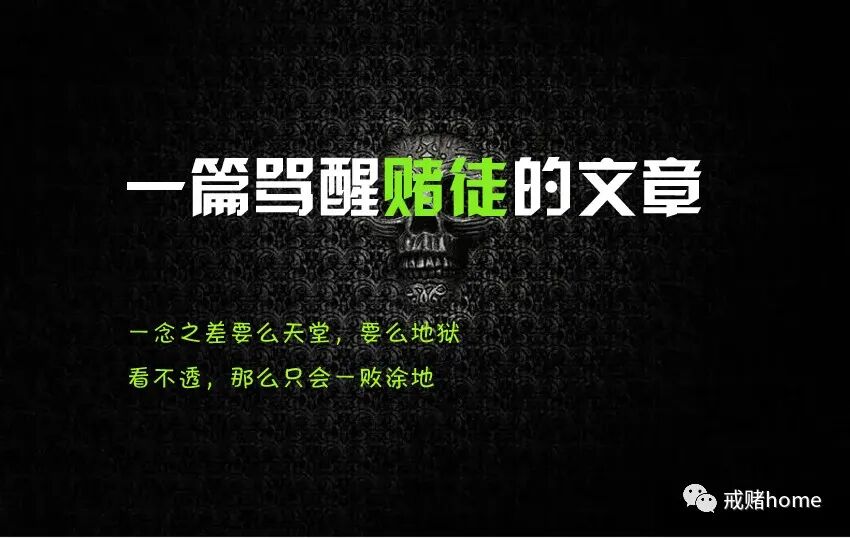 每次赌之前,问问自己什么意图?摔的不够疼,还是输的不够多?死都不惧,还惧赌瘾。你可以偷偷摸摸的赌上一回,那很负责的告诉你,你一定会因为自己的行为而付出代价,去承受痛苦,今天可能你有钱,明天你可能连生活费都没了,干嘛非要把自己逼成落魄赌狗,难道就是为了还债?认清现实吧,这些年你无数次的尝试,也该认清现实问题了,赢不了就是赢不了,就算是赢了,也只是让你中毒更深了,说个例子你就知道了。百草枯大家知道吧,毒药中的扛把子,它给你后悔的时间,却不给你活命的机会,虽然与赌相比有点浮夸,但也很贴切,就算今天你赢了十万,你非常想停也停不下来,你会在自己意识十分清醒的情况下,把赢来的钱完完全全输回去,因为你中毒了,无法自控的输回去。