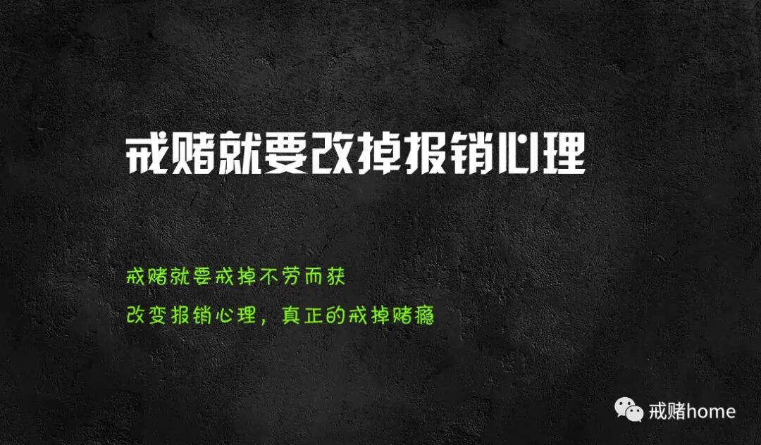 报销心理短时间是无法改过来的,一个人的日常习惯改变了,人性扭曲了,并不是几天,一两个月就能有所好转,博主是过来人,大概是1-2年左右,才能恢复。在这个期间,赌徒要做的就是手头不能有太多钱,交由他人保管是个不错的方式,博主从戒赌那天开始,四年身上都没有放过钱,有钱都给老婆了,不会超过五百块这是人人都知道的,为什么做这么多限制,因为只有这么做,才能控制自己。例如你身上只有五百块,你的高消费心理就不复存在,你无法去参加高档饭局,KTV,酒吧这些消费高的地方,平时需要花钱买手机,或者价格较贵的物品,你都会选择跟家人商量着来。总而言之一句话,欲望只会在有钱的时候才会发生,当你身上就那么点钱,输完就得吃土,你是一点想法也没有。