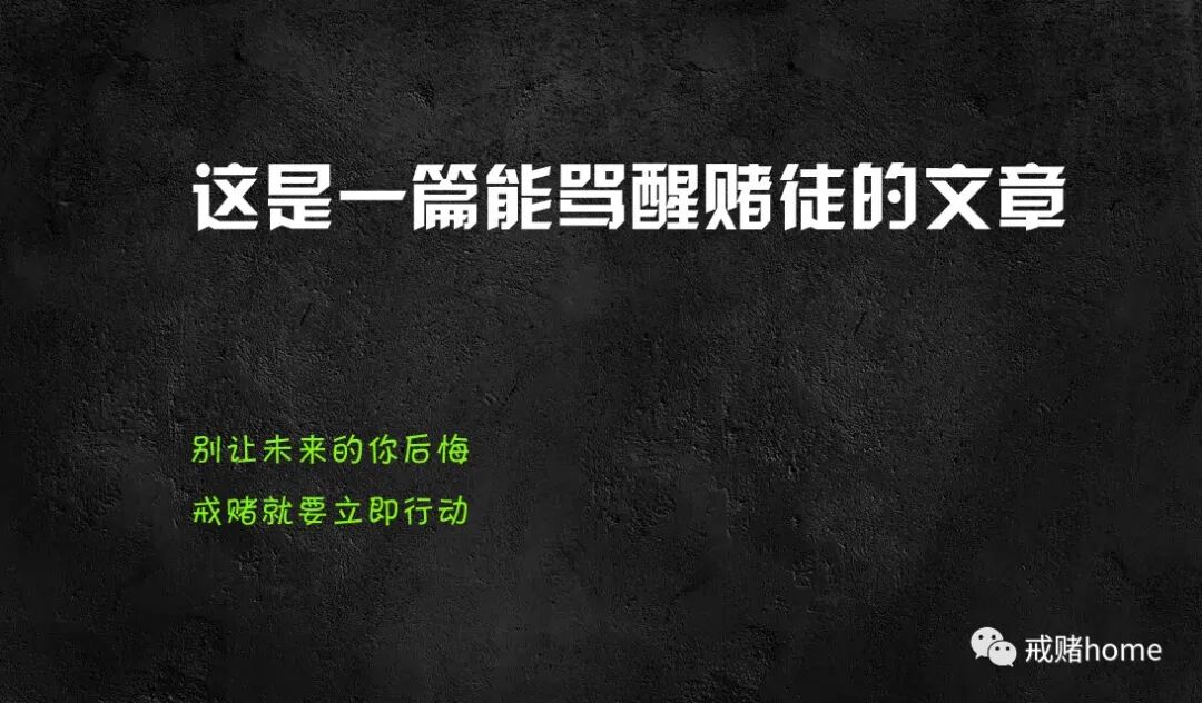 就问问大家,赌的累不累,别人在睡觉,你还在赌,别人在吃饭,你还在赌,你哪怕上个厕所都要赌,这日子是人过的吗?不是离开了赌博你就活不了,为什么非要活的那么龌龊,那么无耻,那么卑微,要么借钱,要么骗钱。也许大家看习惯了别人的惨痛,每次输钱了,就去看比自己更惨的人疗伤,管个屁用,该赌你还是赌,该借你还是借,每天人不人鬼不鬼,没有任何人可怜你,如果你还不戒赌,别急,将来你也会跟公众号投稿的那个老哥一样,连一百块也借不到。如果你还想好,还对未来有一丝丝的期盼,那么现在开始,你就要戒赌,怎么做?去寻找问题,你如果有钱就想赌,那么别让自己有钱,给父母也一样,我两年时间还了12万,还存了2万给父母,我就是对自己不够自信,因为我明白,钱在我手里随时都可能是庄家的,很多人把庄家当成提款机,却从来不知道我们才是庄家的提款机。