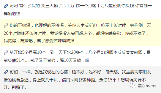 看看评论,谁的结果不是忍辱负重,谁又不是负债前行,哪个人在这个过程中没有赢过,我们看结果,因为赌博本身就没有结果,它是恶性循环。问大家一个简单的问题,债是如何欠的?你今天为什么会这么惨?悟不透,只能是自甘堕落,但你要记住一点,今后人生好坏,都取决于现在的决定。