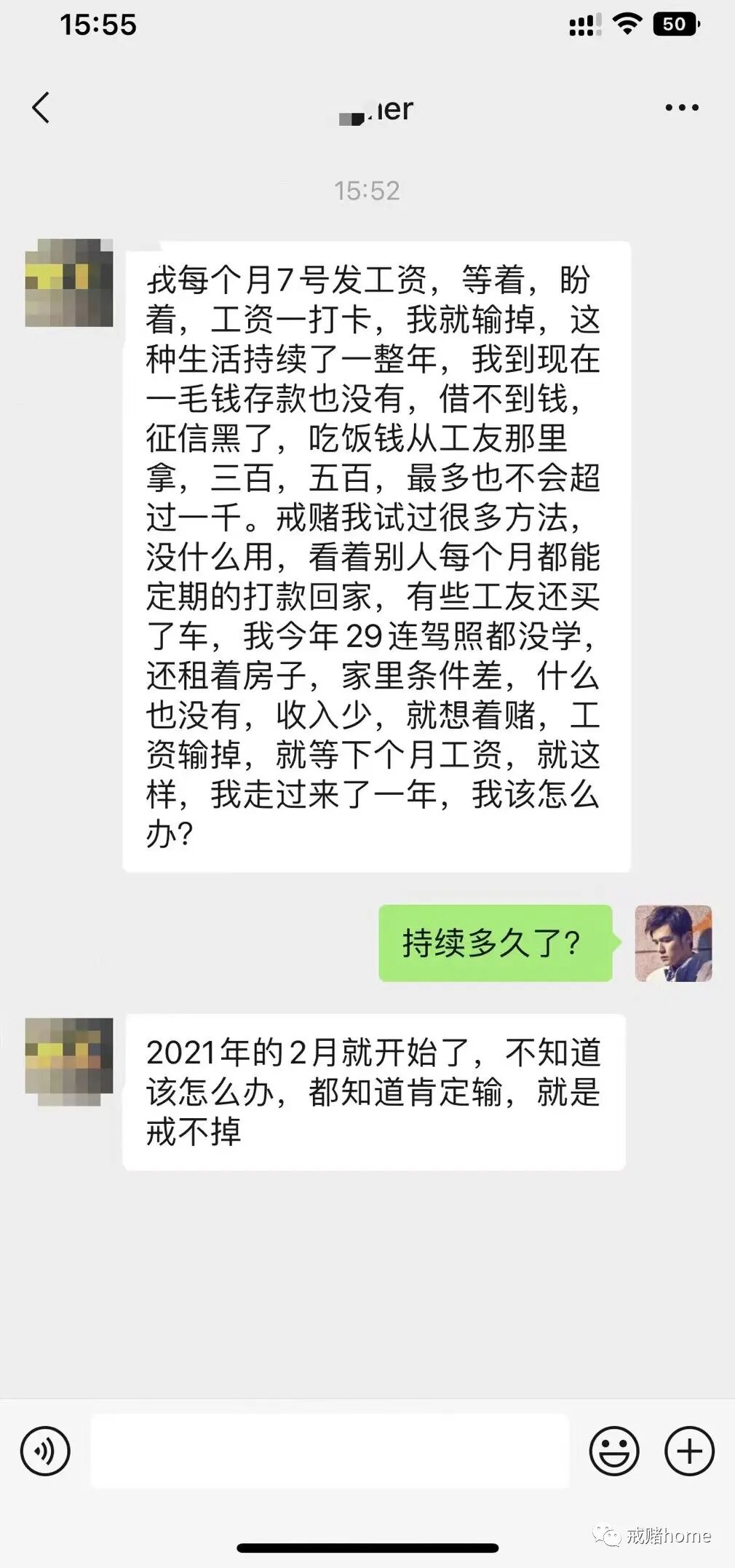 发工资,就输完的人,在戒赌那阵子,身上几乎都是没钱状态,也就是戒赌的条件,就是身上不能有钱,一旦有钱,借到钱,或发了工资,想法又会发生不同变化。你工资到手5000,那时候就会乱想一年才能存5万,多久买房,多久买车,多久才能还清负债。其实,就是对自己的能力不肯定,对收入缓慢无法接受,每次都需要用一次输钱的代价,才能头脑清醒一段时间。