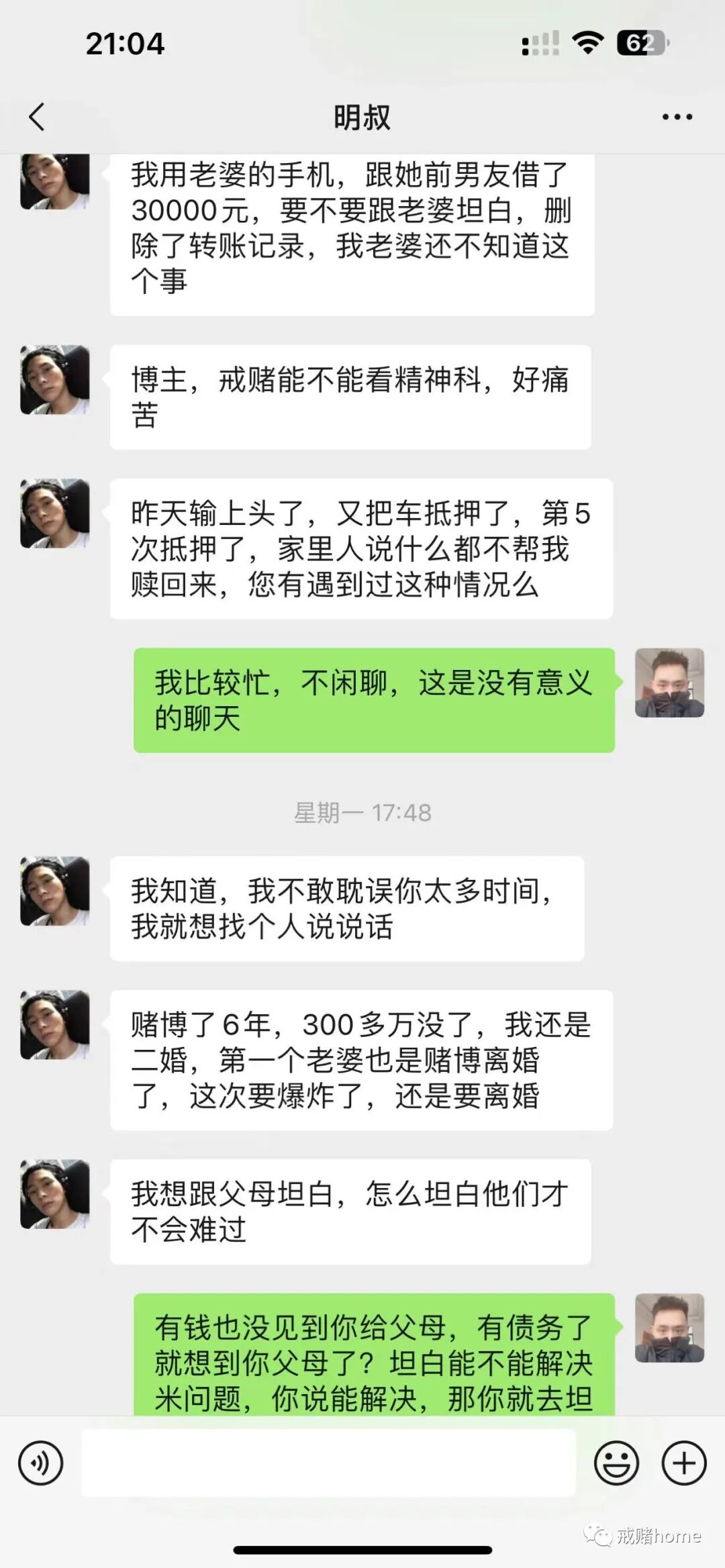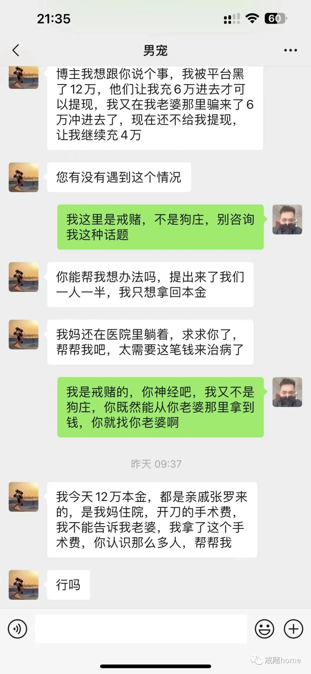 首先不打马赛克了,因为这类的聊天内容,没什么好隐藏,让大家见识下,什么才是极端赌徒,和病态赌徒,也奉劝各位,别继续下去,越陷越深则身不由己,别等一无所有才醒悟,戒赌需要提前。