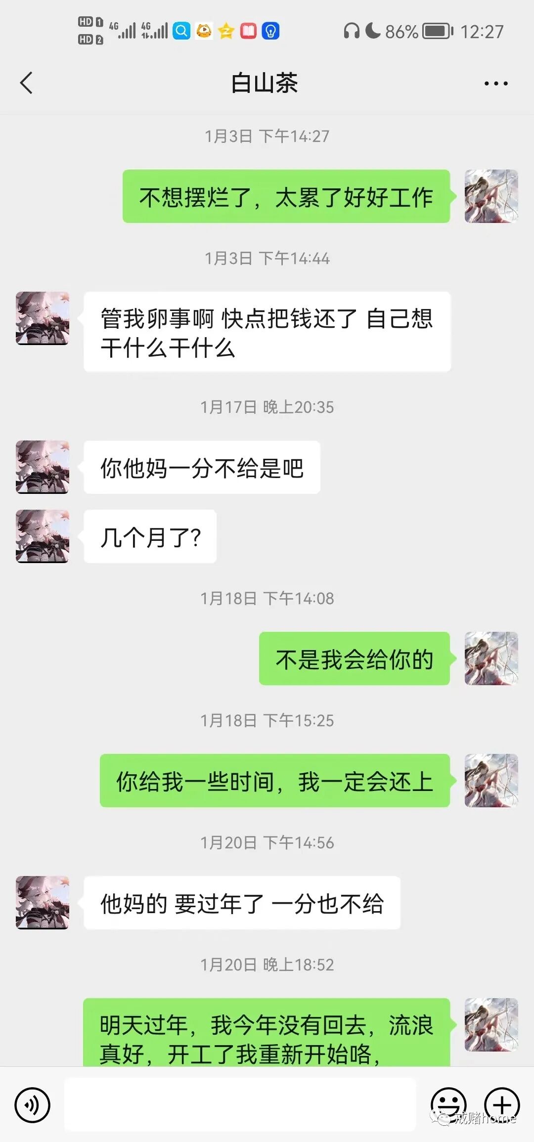但是后遗症还在继续,刚分手不久欠的网贷也终于爆发。我的手机每天都有十多条短信,还有电话。还有各种发短信威胁,但是我已经不想理会了。因为我已经麻木了,我的心也死灰。比起我内心的创伤这些威胁,只不过是九牛一毛罢了。于是去年变成了我人生中最灰暗的一年,那一年我直到过年都还在工作,我也没有回去,我也没有脸回去,我对不起我身边的所有人。凡是跟我有了瓜葛的人,最后都会被我伤的遍体鳞伤。这句话真没有夸大事实,去年是我在广东过的第一个年直到今天我写下这篇文章的时候,我的泪水已经流了不止一遍。