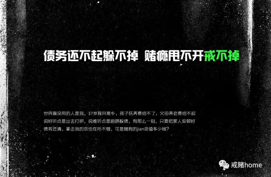 我戒过,我发誓我真的戒过,我忍受着各种催收,安分守己的挣钱,可是每个月到了还账的时候,是最纠结的时候,什么债务都着急,什么债务都要还,我的月薪不是几万,几十万,不能让每个债主都痛痛快快,我能怎么办?父母因为被亲戚催,我担忧他们的身体,我想早早的还给亲戚,朋友,又何尝不着急,他们都是背着老婆偷偷拿出的钱给我,我已经把朋友也给害了,还有离婚的妻子,带着娃,那也是我的亲身骨肉,抚养费哪怕有点良心都要给,可是我腹背受敌,谁的都想还,但是谁的都还不了。成了老赖我不怕,我怕的是那些信任我的人,我愧疚,如果可以把我五马分尸来求得他们原谅,我宁愿承受世间最痛苦,最残忍的极刑来弥补过错。朋友们,爸爸,妈妈,老婆,那些亲人们,我只能偷偷的说一声对不起,我也不知道自己为什么走着走着,就走到这条路上,曾经那个温馨的家庭我怎么就毁了?我又为什么学会了赌博,这个纠缠我一生一世的精神鸦片。