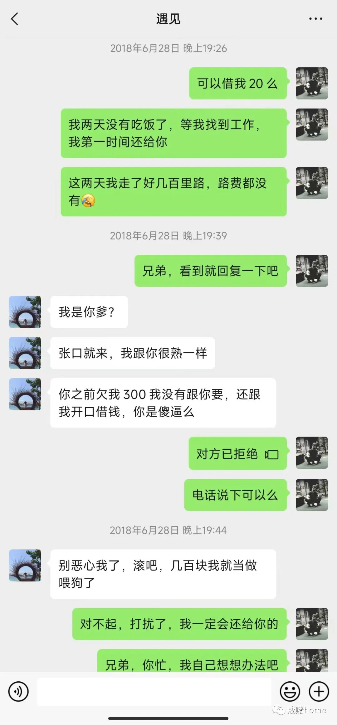 上面的图是2018年的我,跟条狗一样,连20块都借不到,截图一直留存在QQ空间里,提醒自己,不要再重蹈覆辙,一定要好起来。