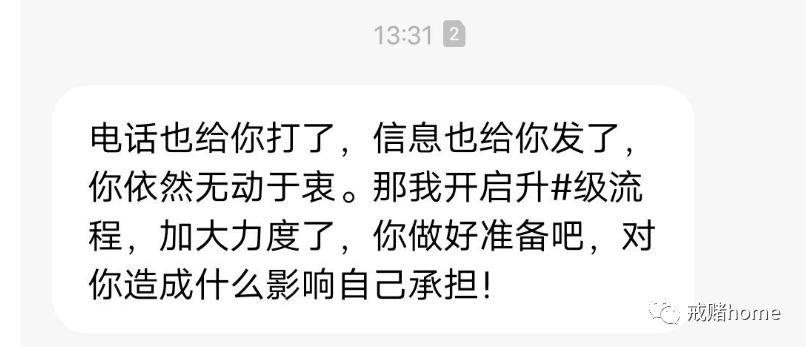 是不是每次接到这种催收信息,就萌生了赌博的想法,忐忑不安的心情,害怕亲戚知道,家中的老父母知道,单位的领导同事知道?于是,你走上了借钱赌博的路,只想赢点钱还债,然而每次的结果,债务没还,反而又多欠了一笔?