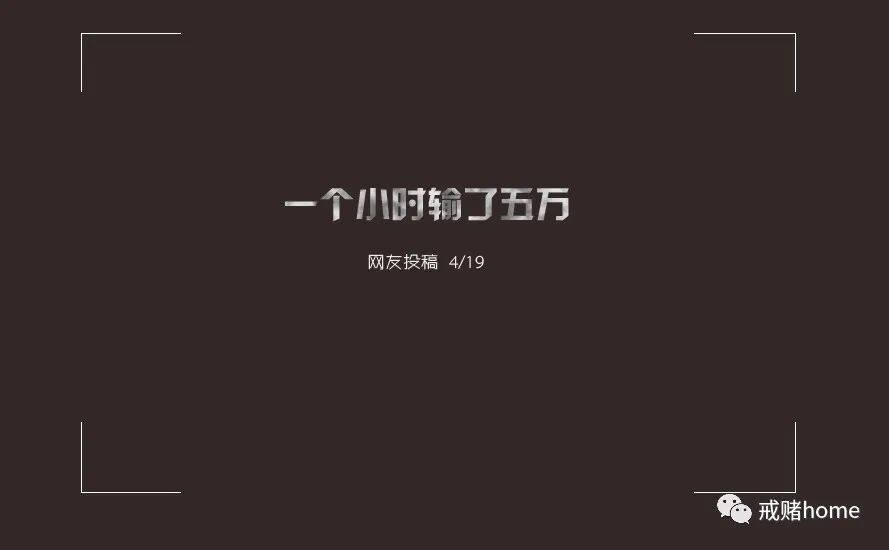 我今年36岁,有一个幸福的家庭,两个孩子交给了外婆照顾,我跟老婆在二线城市上班,原本这一切的生活都幸福美满,只因触碰网赌之后,我开始变的一蹶不振,就一个早上的时间,大约1个多小时,我就输进去五万块,前段时间其实也输了四五万,算在一块今年的工资等于都输没了。接下来,我把自己这段时间的所有经历,投稿到戒赌home这个平台,我希望这糟糕的经历,能唤醒其他人可以回头是岸。