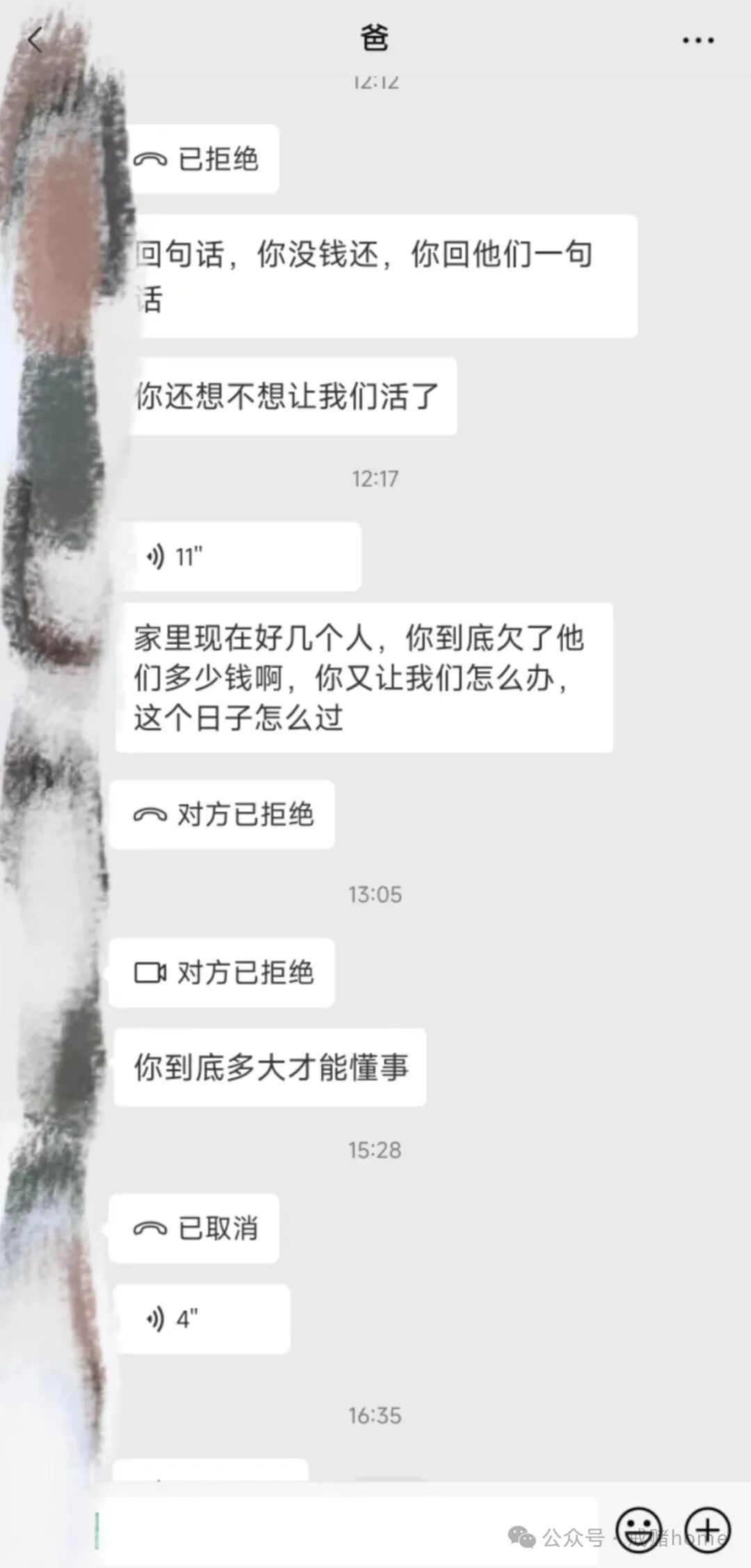 这边的习俗是正月不能要债,大年三十是最后一天,来我家要钱的人就好几个,我能回的去吗?我只能在外面跟条狗一样,狼狈不堪,甩包把压力丢给父母。这些债都是我借的,冤有头债有主,我想着也不会拿我父母怎么样,而实际我忽略了,自己可以在外面逃避,父母的脸面我又何曾顾虑过,家中门口停了几辆债主的车,别人又怎么看待我的父母,他们以后还怎么抬得起头。这几个小时,好漫长,我想了好多,外面都是万家灯火,整个抖音里都是吃团圆饭,唯独我跟流浪犬一样,躲在天桥底下,这个报应真的让我无法接受,可我怎么才能改变,怎么才能把那些债务还清,如果能还清,我折寿20年也愿意。