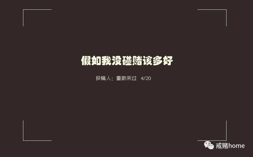 博主点评:回头是岸,为时不晚,感谢这位粉丝的投稿,希望在今后戒赌路上一帆风顺,同时也感激您为正能量奉献。
