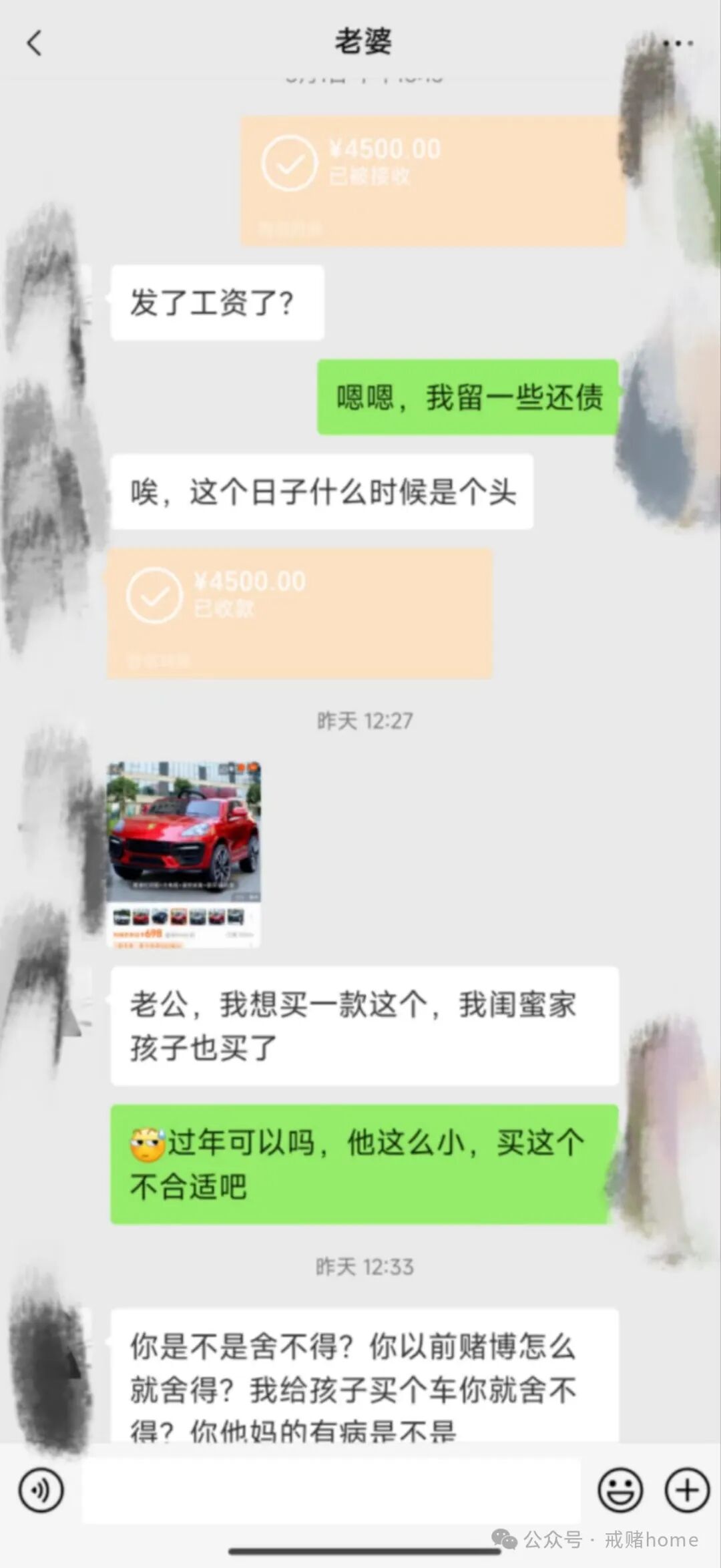 因为会骗,总说在外面投资建设餐饮店,为了骗老婆钱,还自己在网上搜索了很多开店手续,合同,包括假的公章,找个打印店打出来给老婆看。她信以为真,为了支持我的事业,一步步的钻入到我的计划当中,包括教她借网贷,办信用卡,得到的钱少部分还利息,其余的都拿去炒股、炒币,整个人完全已经魔怔的让人恐怖。赌徒擅长演戏,我虽然不是网赌,但跟网赌的那些人都一样,祸害自己,坑害老婆,这个事情炸了后,或许良心发现,我提出离婚,但是她说再给我最后一次机会,然后我妈把房子卖了,老家的房子并没有那么值钱,卖掉以后,只是把老婆的债务还清,然后老丈人也借了10万,我拿着这笔钱把那些紧急的债务还清,只剩下37万。这两年老婆刚好也生了孩子,所以还债速度很慢,也就还了4万。