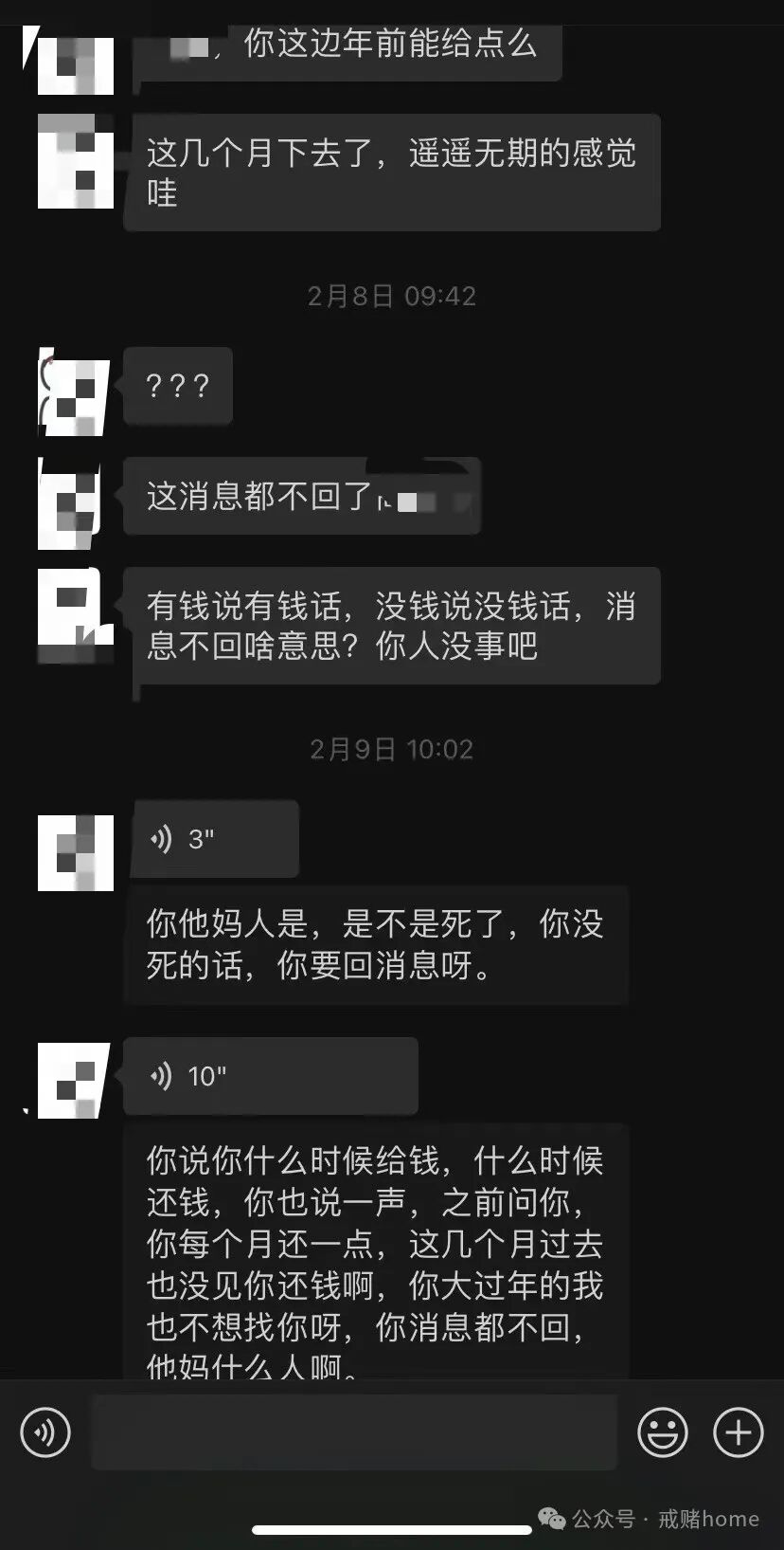 后来实在是没钱,就戒了一段时间,但是欠的网贷太多了,每个月的工资完全不够还,实在没办法,只能跟老婆和我爸妈坦白。知道我是在网络赌博之后,我爸妈狠狠骂了我,我老婆也哭着喊着要闹离婚,但是最后还是安抚了她,然后我爸妈把存款都拿出来,给我填平了60多万的债务。