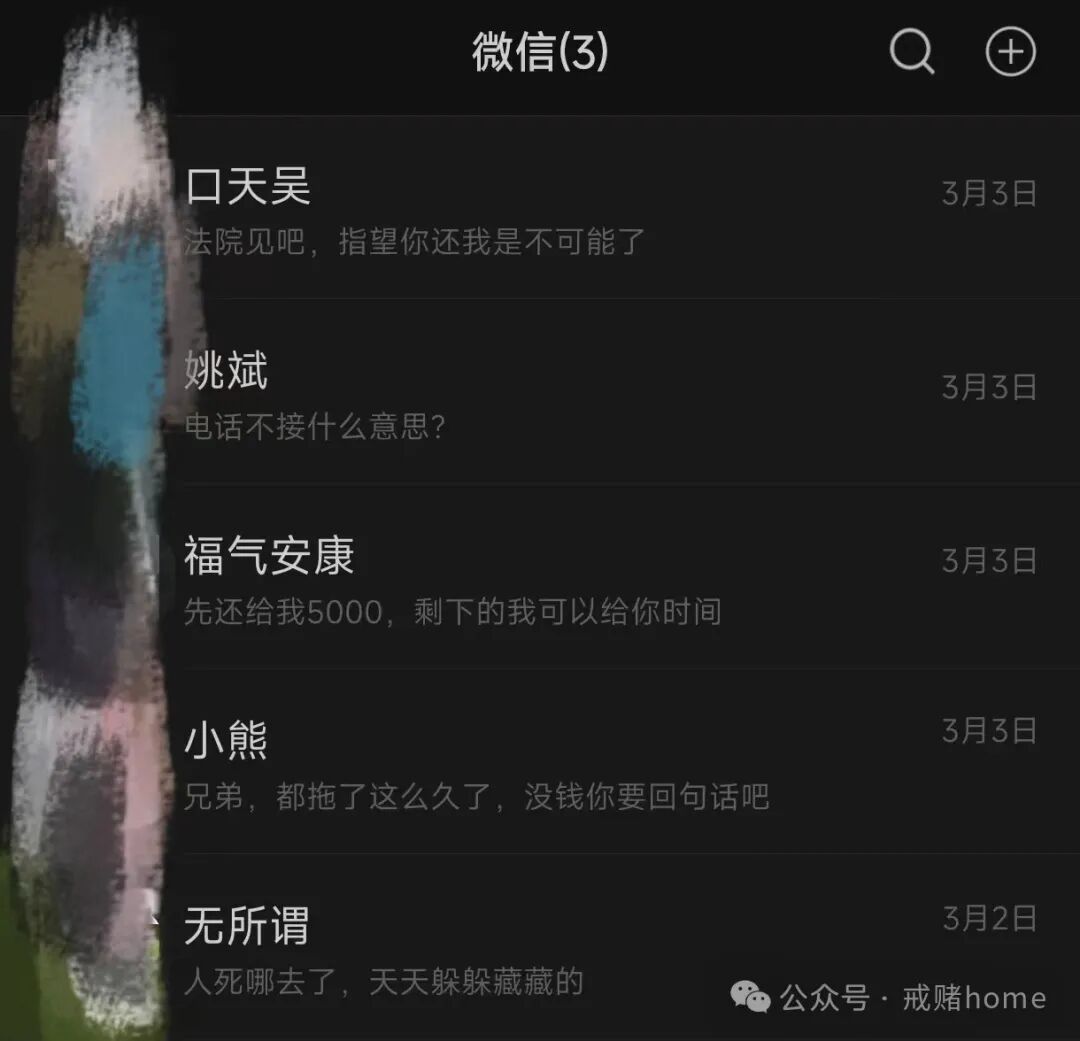 在那段时间里,一边养贷,一边赌博,今天问亲戚借,明天问朋友借,赢了就还账,输了再借,有些人,可能上午还给他了,我中午就重新借回来了,对于一个从开都不开口借钱的人,根本就顾不上脸面那回事,债务又几经波折,来到了150万,已经到了我的能力承受极限,信用也透支殆尽。后来不言而喻,坦白,老婆接受不了离婚了,我还抱怨她太现实,只能与我同甘,不能与我共苦,房子卖了290万,她拿一半,我拿一半。那笔钱被我拿去还债了,几乎接近上岸的状态,可一直都无法戒赌,让我这几年之中,一直持续到2024年的3月底,总体债务上升来到90万,家人骗尽不说,昔日给我入股开店的那朋友,我不顾脸面,以没有协议和收款凭证为理由找他索赔,当时他给的那20万并不是直接打到我的卡里,所以我是揣着明白装糊涂,我为了赌博,为了搞赌资,我脸都不要了,用这种手段,强迫他给了我7万块,最终的结果也是全输了,连朋友也没了,良心那种东西早就被狗吃了。