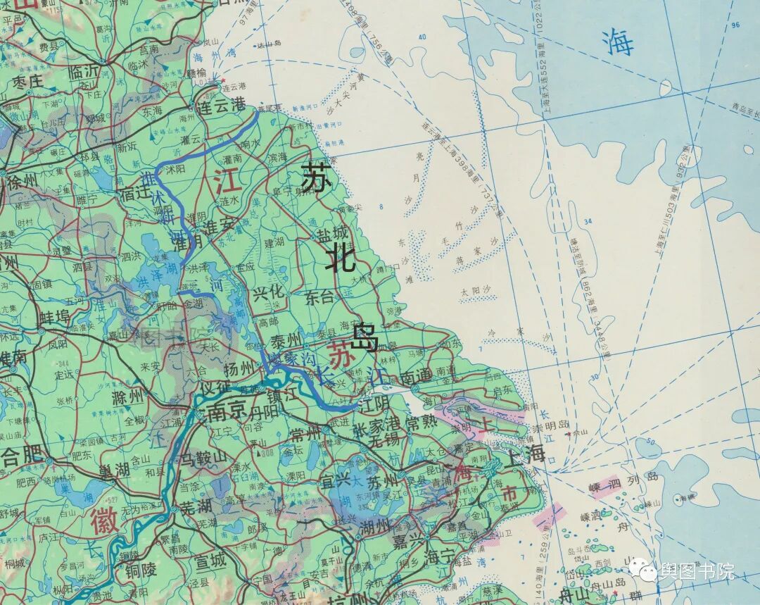 (淮河河口“苏北岛”示意图,更多神奇的陆上岛屿,戳链接:舆图鉴赏:藏在大陆里的岛屿(中国篇))