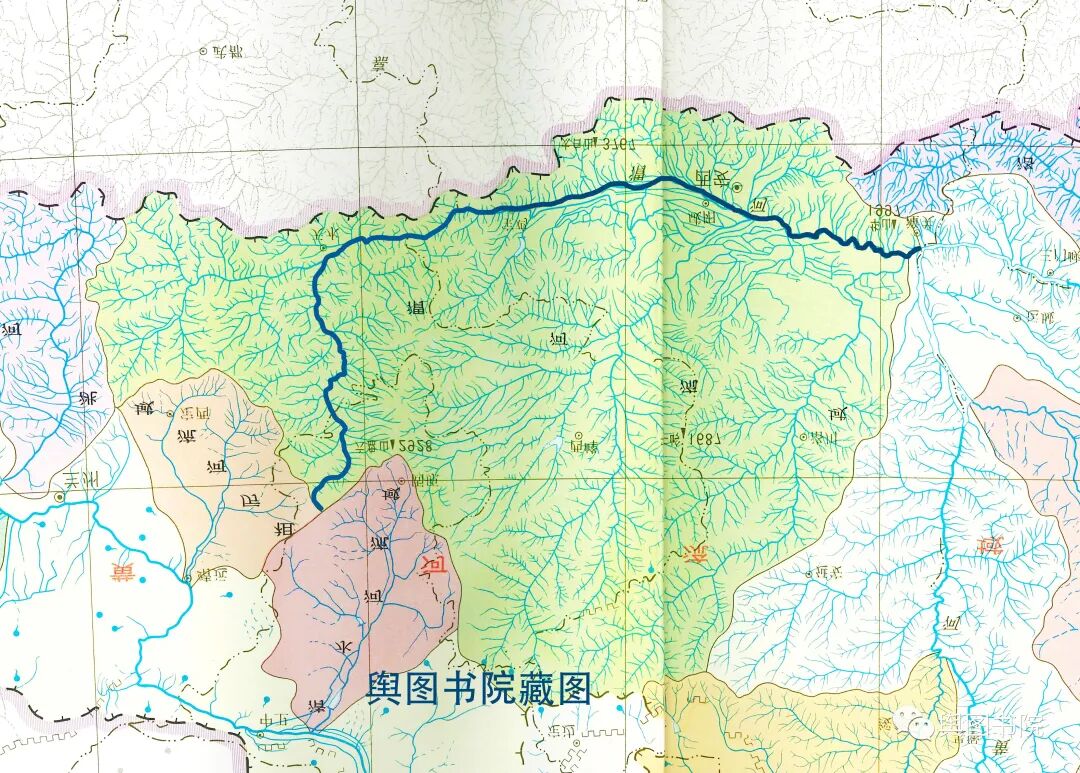 (渭河流域南北镜像地图,底图出自黄河流域地图集。渭河发源于宁夏固原,正源是葫芦河,在天水汇合后为渭河)