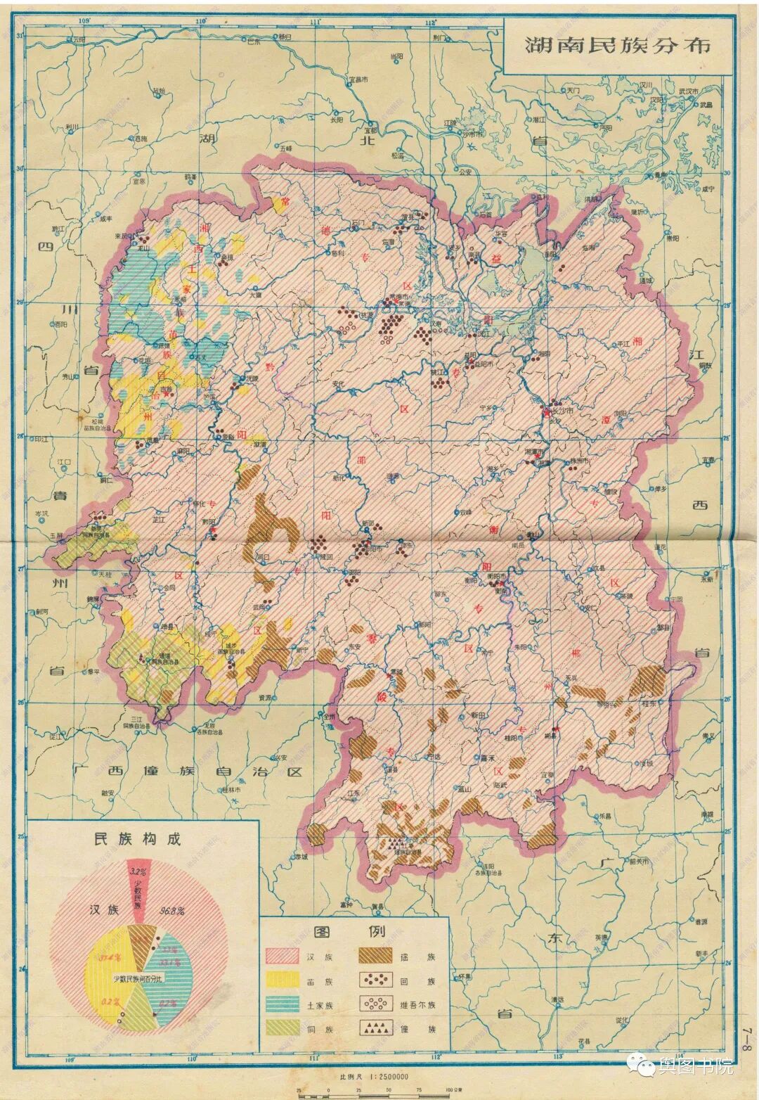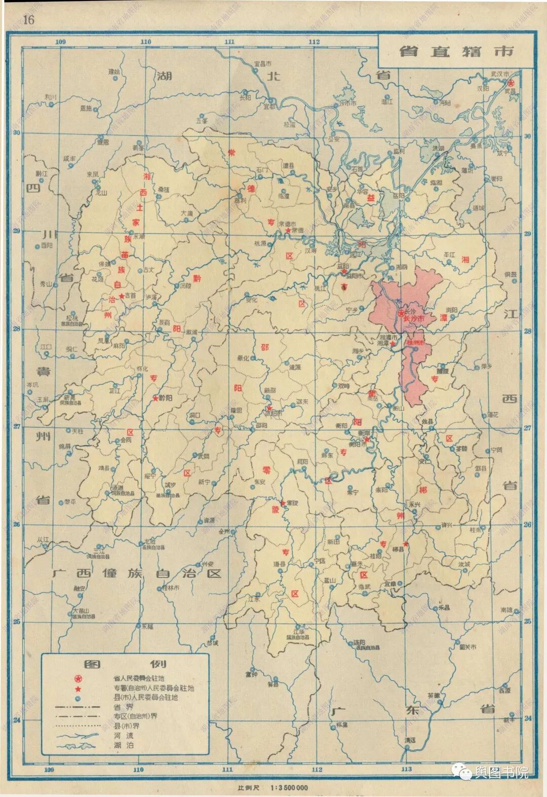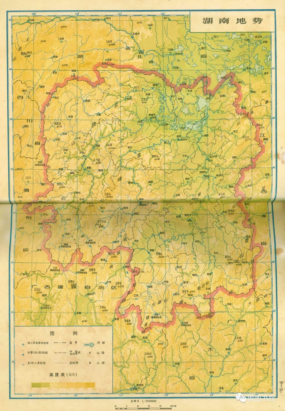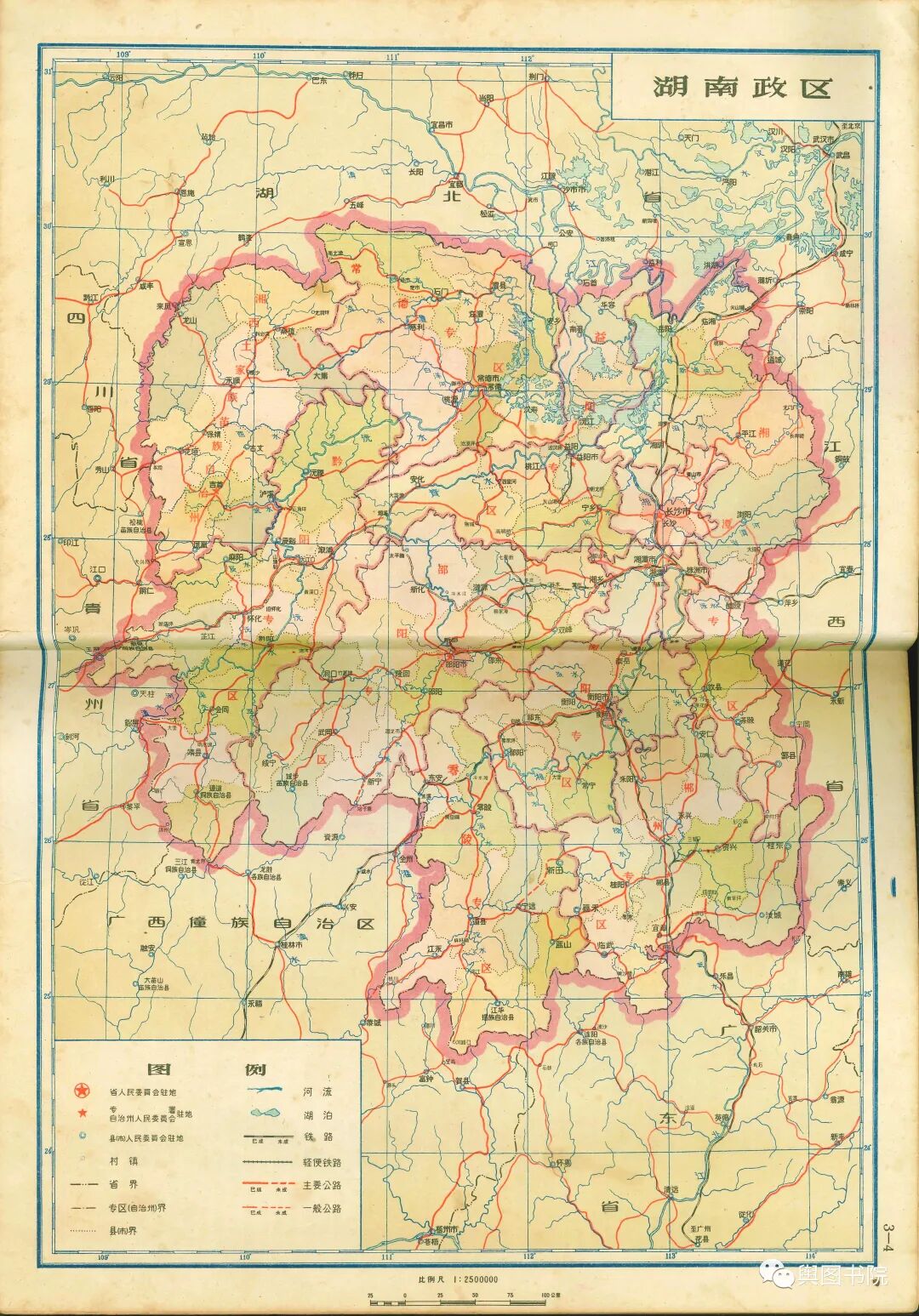 湖南省地图集分专题图和普通地图部分,专题图介绍了湖南省地形经济交通概况,普通地图一县一图,是非常珍贵的等高线分层设色地形图,而且是固定比例尺,制图相当细致,无比精美。我们今天欣赏第一部分,省的专题图,和省辖市(长沙,株洲),以及湘潭,衡阳,郴州,常德这些专区。