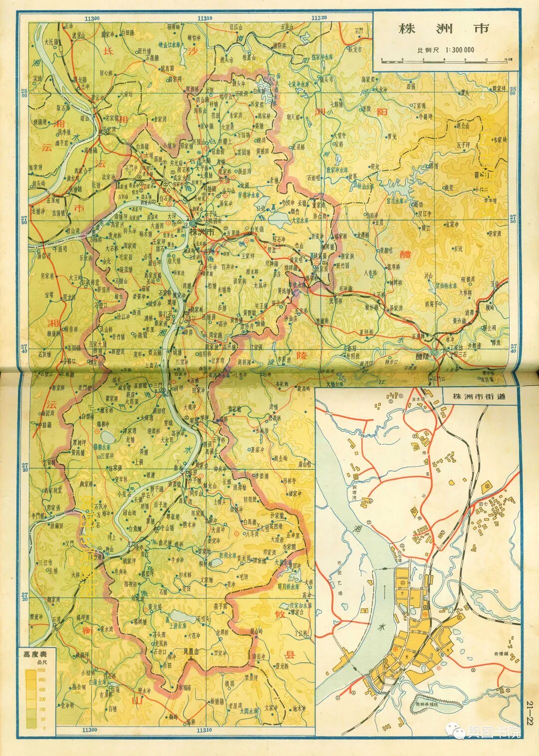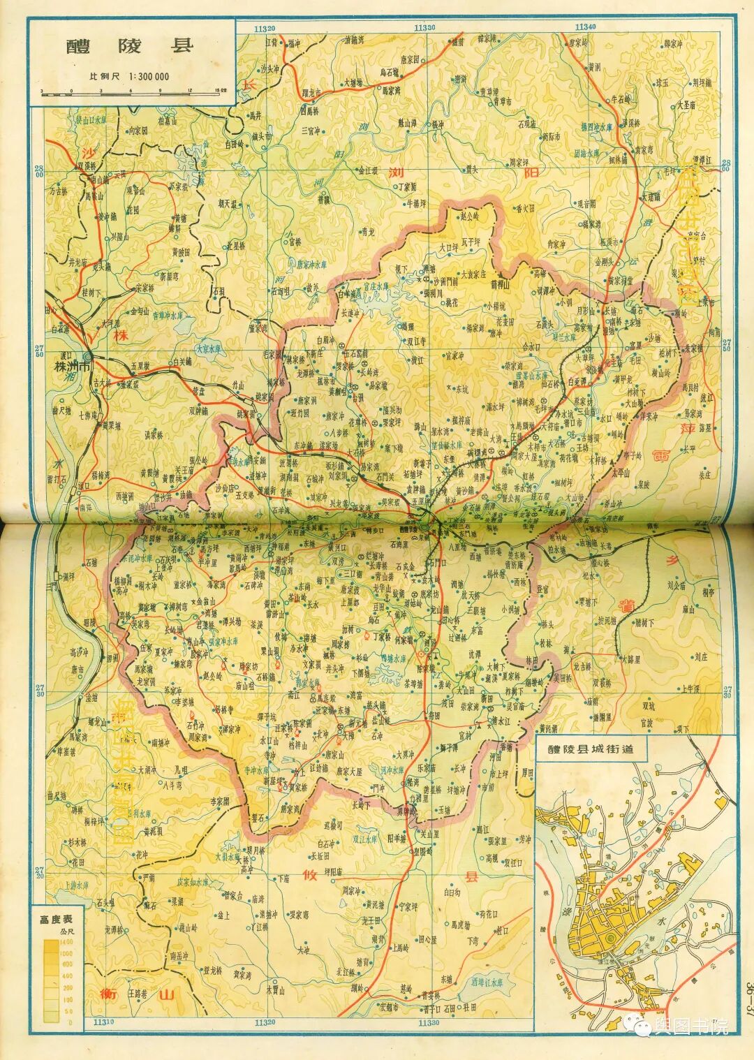 1964年地图可以看出,株洲新兴城市的发展轨迹。这里处于湖南最重要的铁路枢纽,又有便利的航运条件,很早就聚集了大量工业,成为湖南早期工业中心。