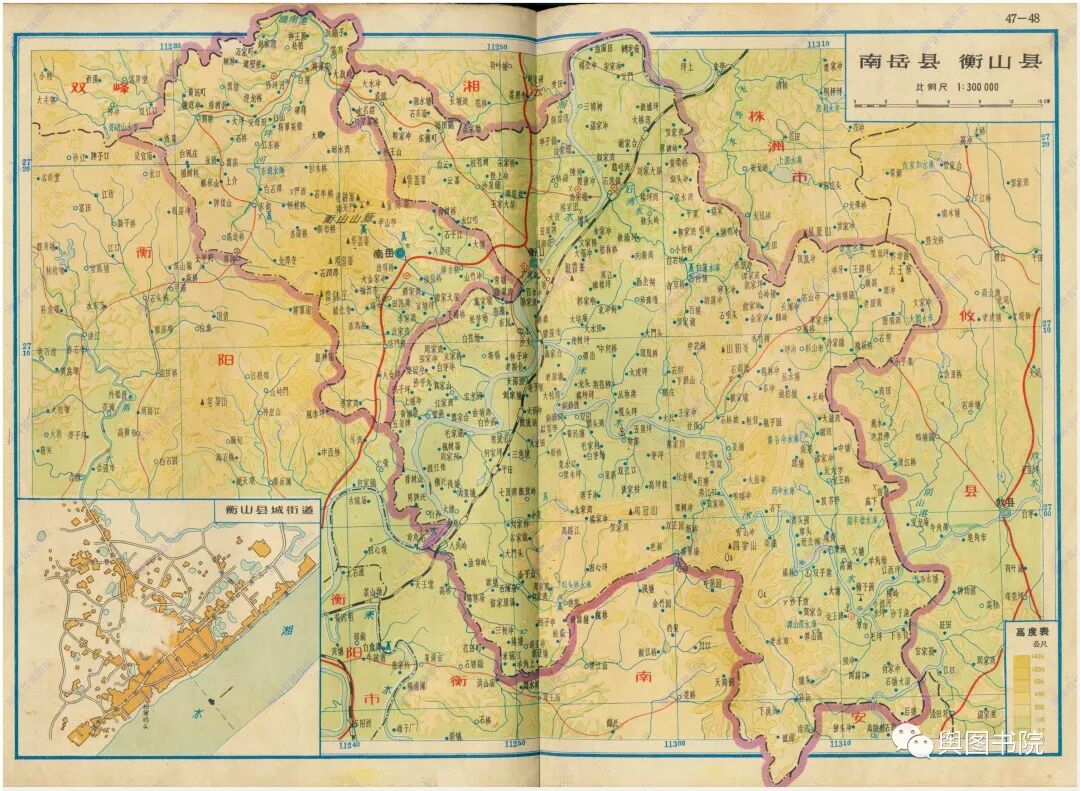 南岳衡山是衡阳的知名地标,这里也是久负盛名的旅游胜地。衡阳市辖区范围和今天相对接近一些,这也体现了衡阳相对稳定的区域中心地位。1964年的衡阳专区大致相当于今天的衡阳市,只是比今天多了祁阳,少了耒阳。