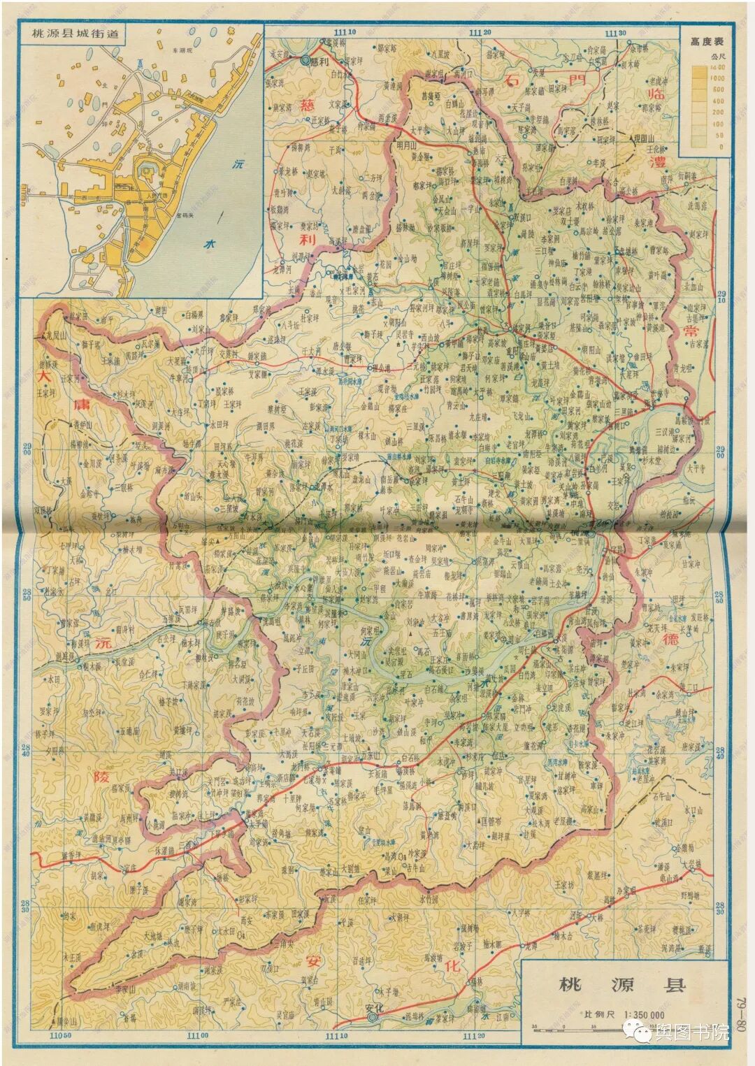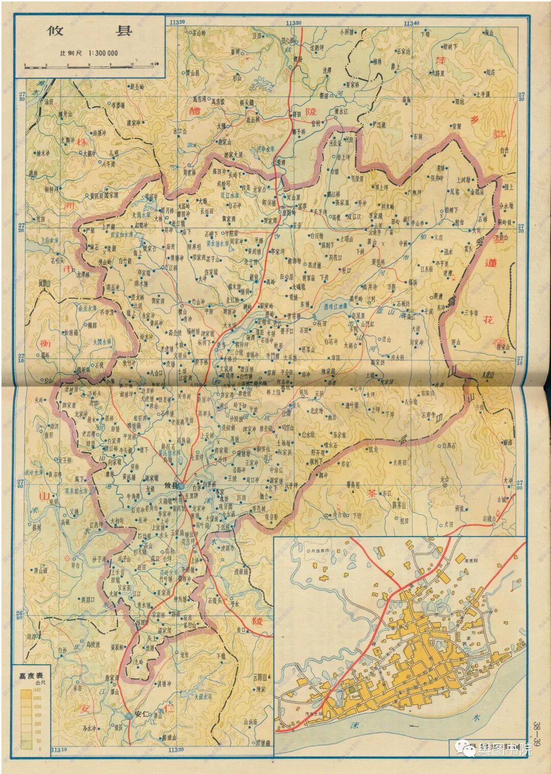 湖南地图的图例相当丰富,市县地图中对于地物的刻画还是比较精细的。另外在市县介绍中,着重突出“麻风病院”等信息,这也是当时重要的特色。