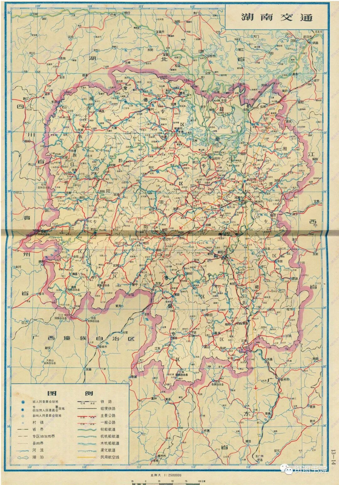 湖南交通状况在当时的南方各省还是不错的,从铁路看,主要铁路有纵贯南北的京广铁路,以及横贯东西的浙赣铁路(这条铁路通到株洲),湘黔铁路(当时东段已经贯通,西段在建)。以及湘桂铁路。湖南有意思的是,省会长沙并不是铁路枢纽,当时湖南有两个重要的铁路枢纽,一个是株洲,另一个是衡阳。但是这两座城市,却没有像郑州或者石家庄一样,因为铁路取代传统省会,这里面原因是多样的。一方面是这些新兴城市兴起的相对晚一些,并没有立即形成压倒性优势,另一方面就是长沙的中心地位比较稳固,难以被其他城市取代,当然,这个和政策发展等也是密不可分的。类似的比省会更早形成铁路枢纽却没有取代省会的城市还有榆次(晋中市)以及咸阳市等。