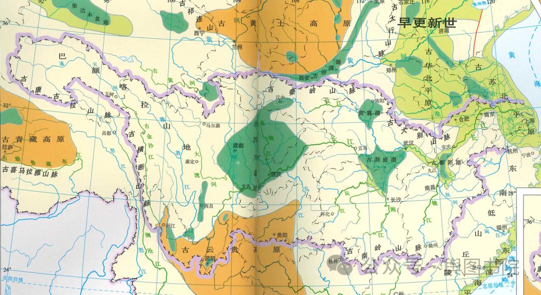 (早更新世(258万到73万年前)长江流域古地理,长江发育进度80%)