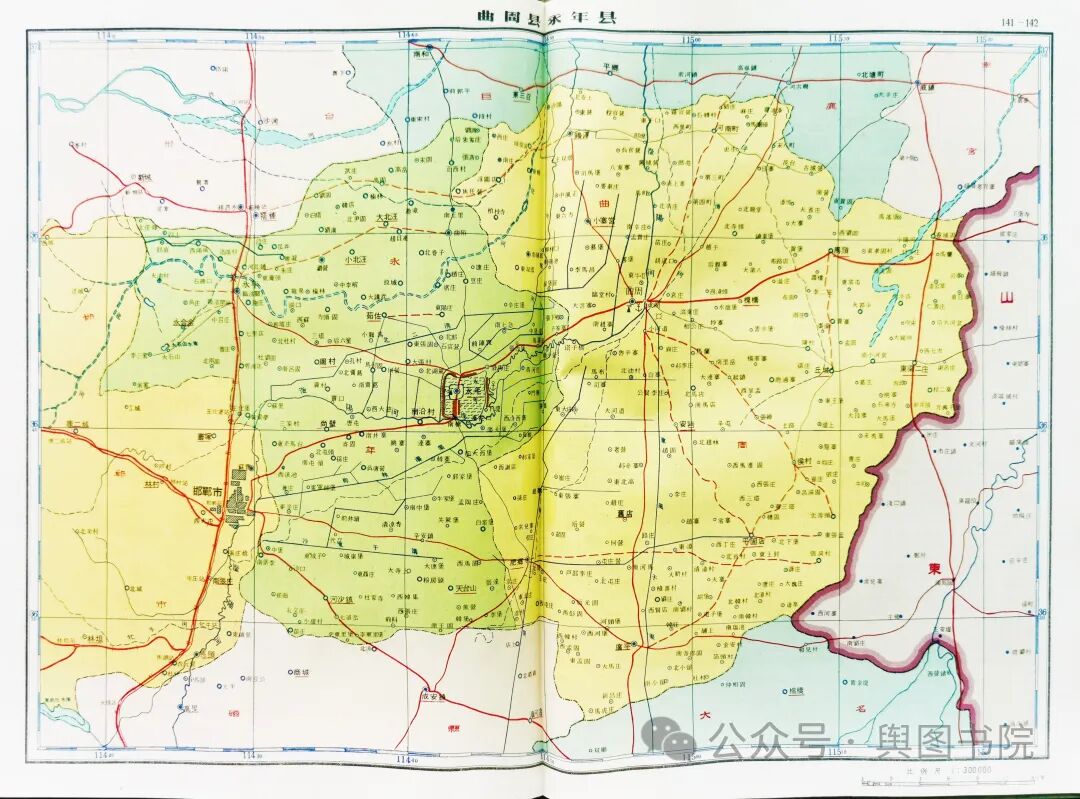 曲周县也是一个五合一的超级大县。1958年时候,由广平,曲周,邱县,肥乡,鸡泽五合一而来。永年县则合并了邯郸县的一部分形成图中格局。永年县城地处洼地,即著名的永年洼。