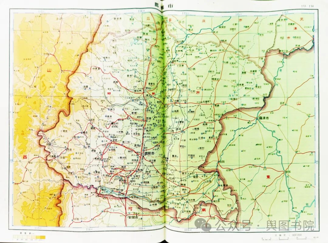上世纪60-70年代,各省相继出版了自己的省级地图。1960年,河北出版了第一代省级地图集,这是中国最早的省级地图集之一。地图制作十分精良,信息非常全面。而且,由于处于特殊时代,行政区划变化剧烈,很多区划都是昙花一现的,这让这部图集显得弥足珍贵。河北省的变迁,许多地方在中国是绝无仅有的,这也是区域特色之一。