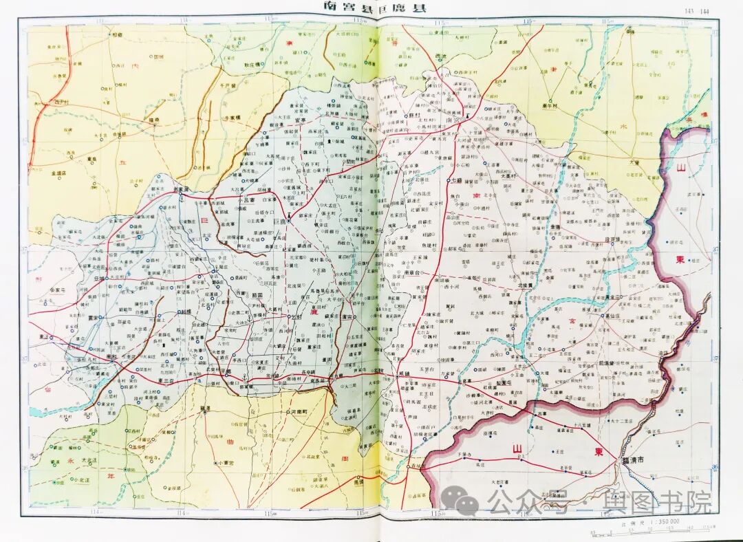 1958年,南宫,威县,清河三县合并为南宫县。这里水系有一个清凉江,是华北地区极少见的冠名“江”的水系。巨鹿也是一个五合一的县,由巨鹿,平乡,南和,广宗,任县五个县合并而来。巨鹿县是太行山南部水系交汇处,有九河下梢之称。这里古时候有一个大湖,叫大陆泽。